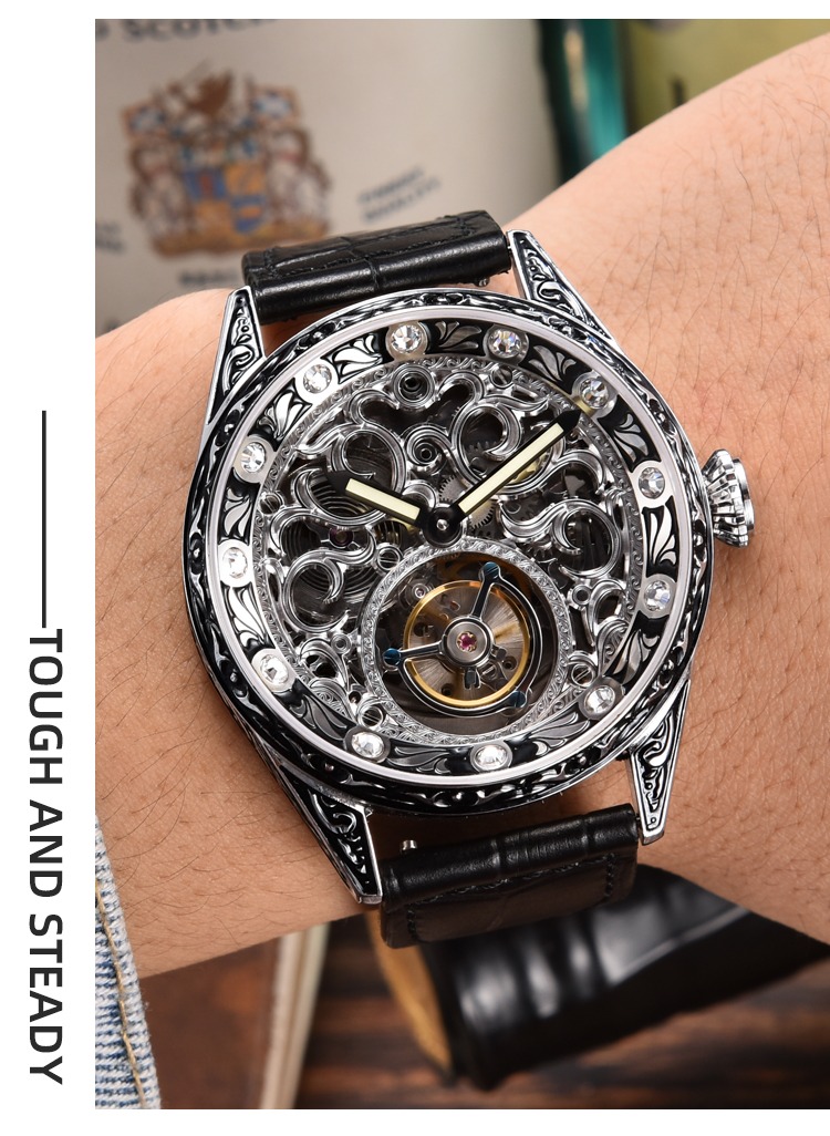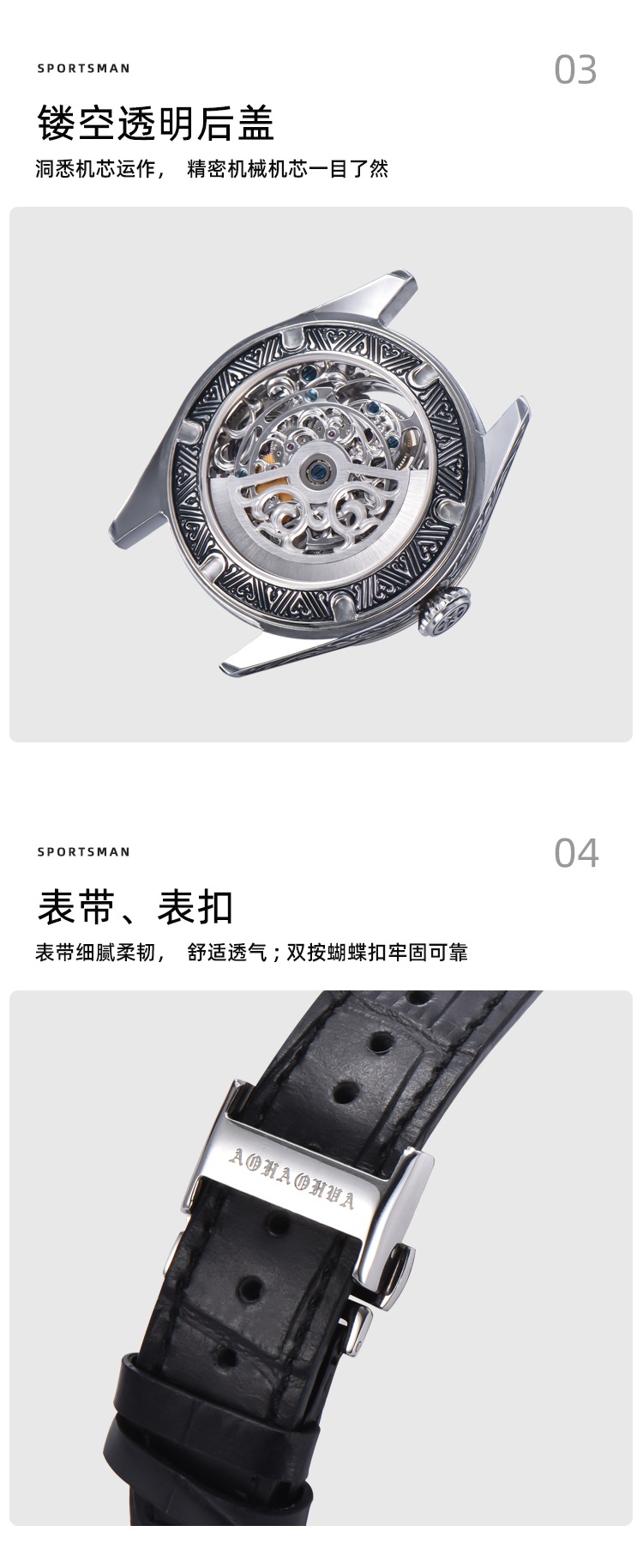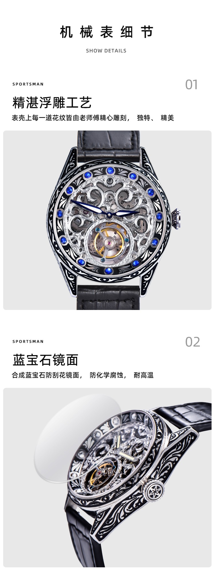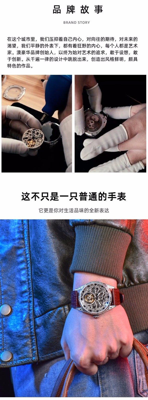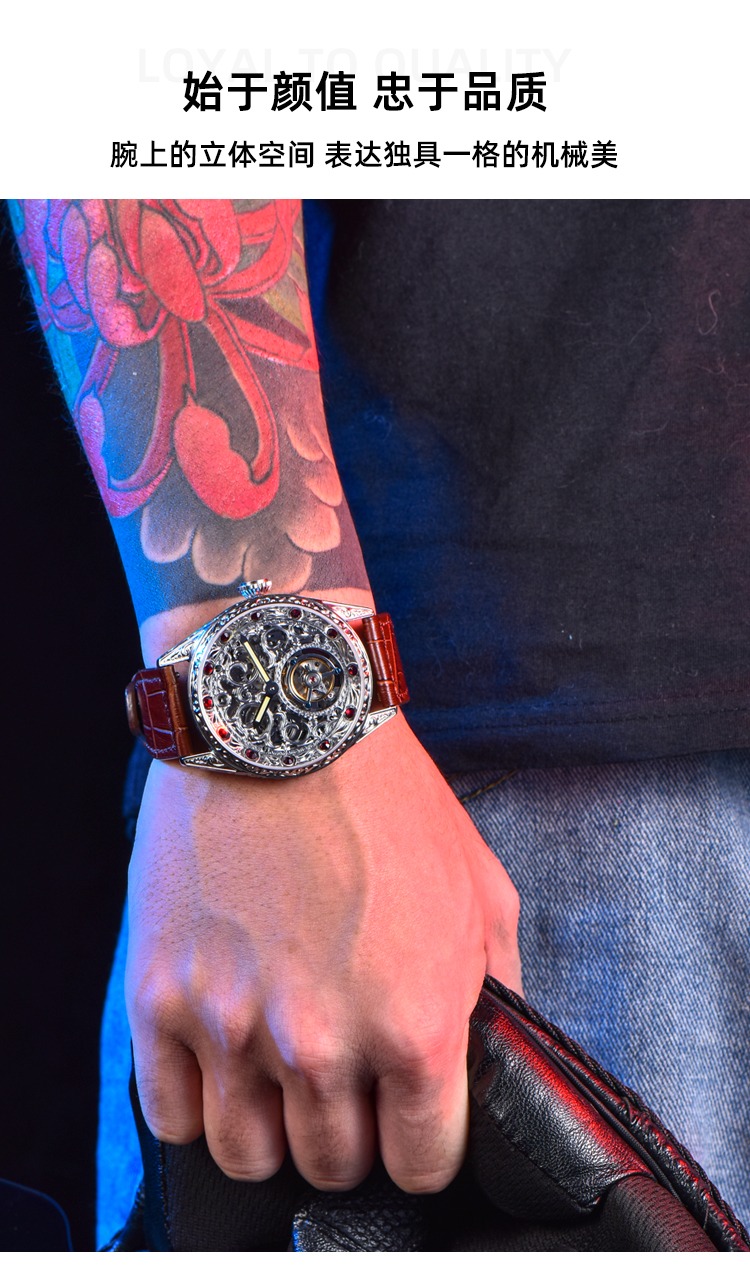 真陀飞轮机械表双面全镂空手表十大品牌男士潮流腕表真皮表带防水