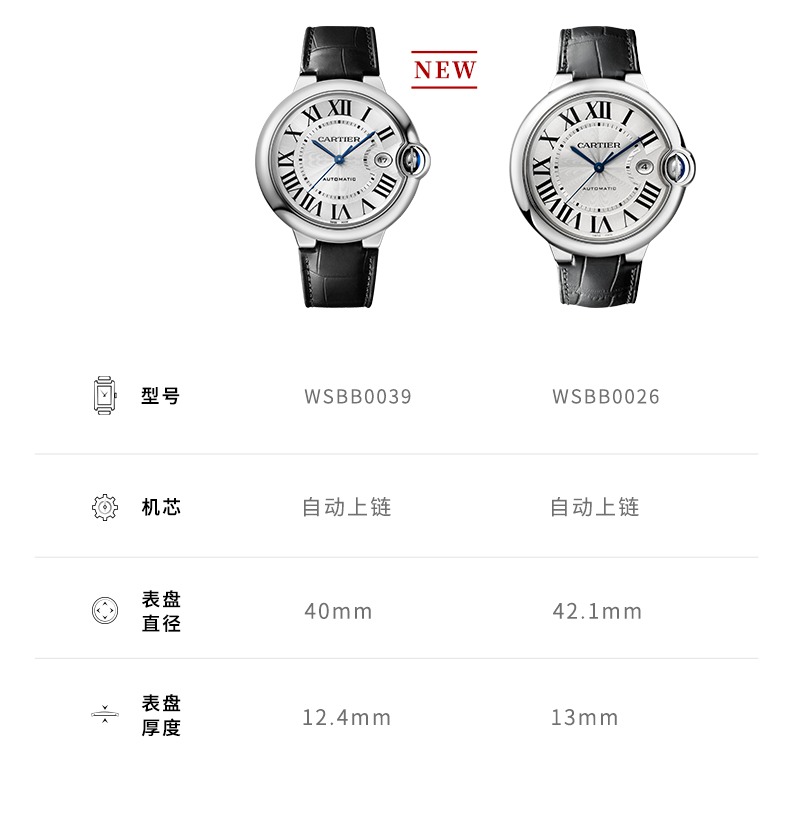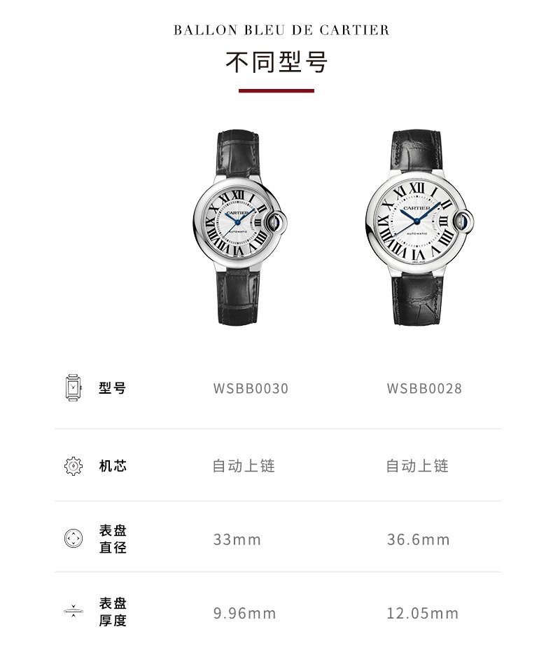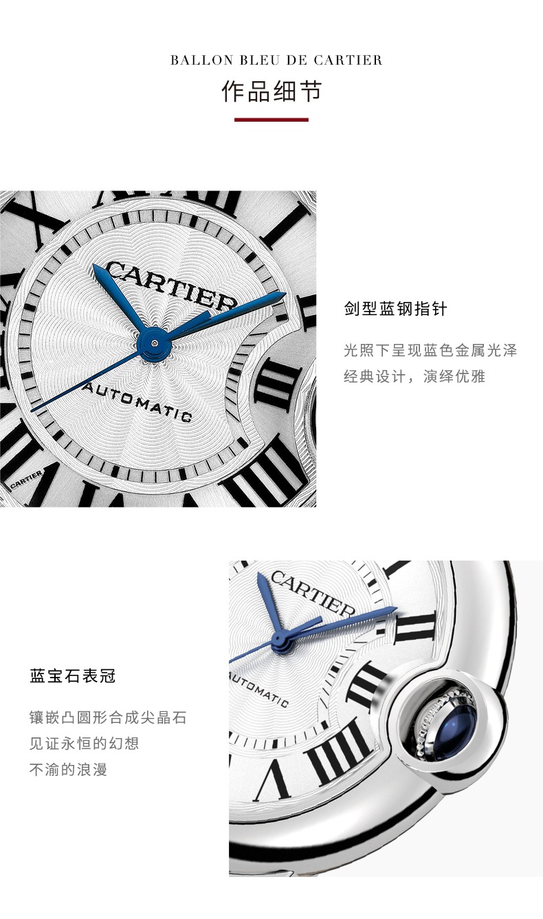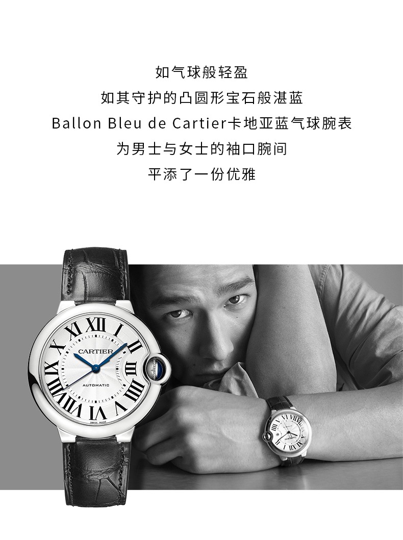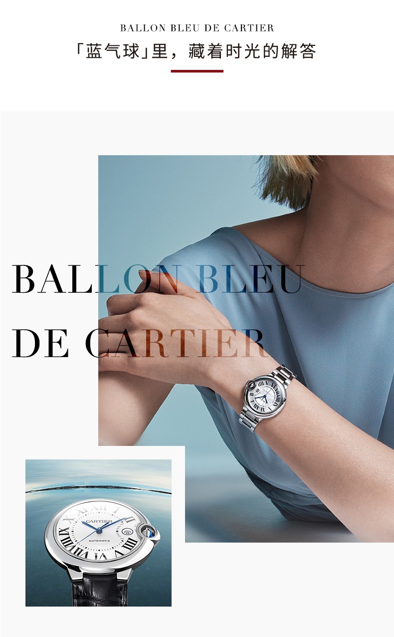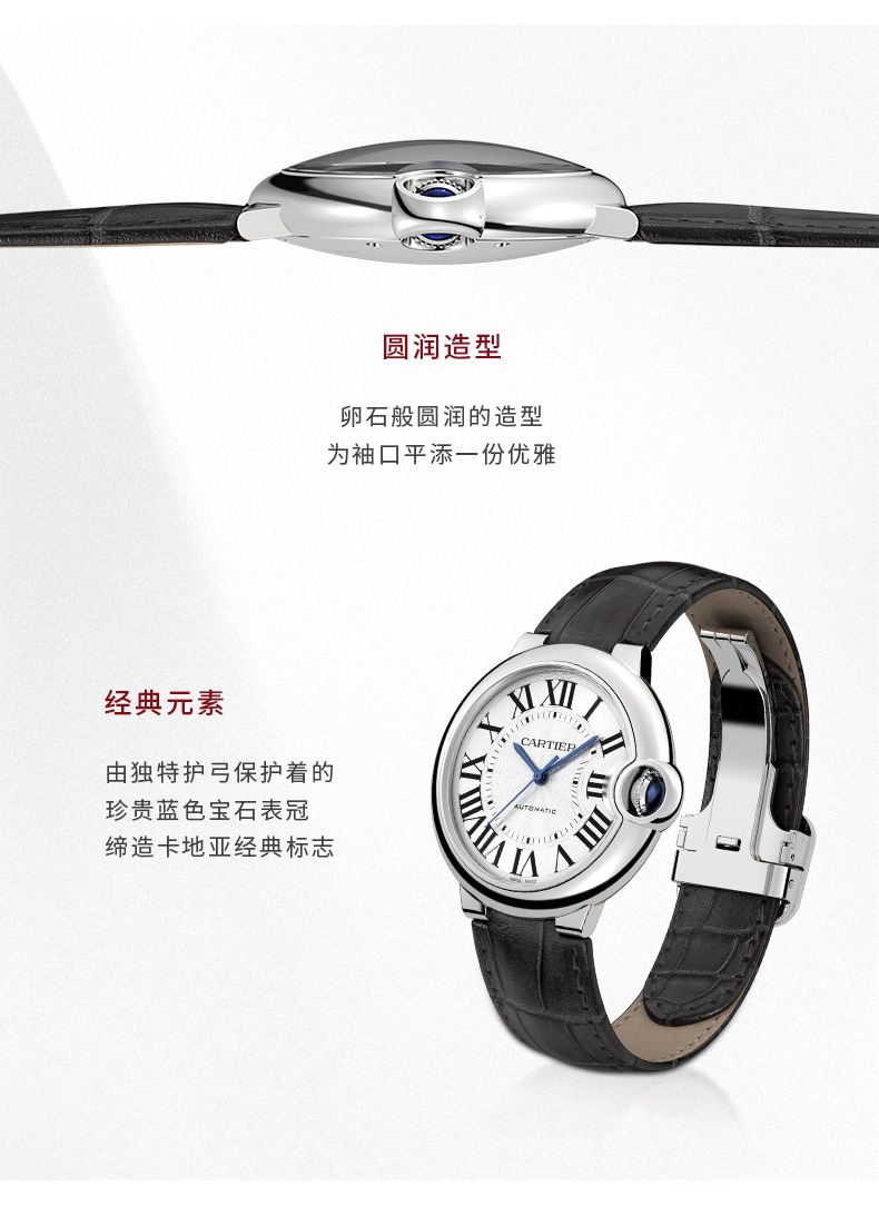 Cartier卡地亚Ballon Bleu蓝气球系列机械腕表精钢皮表带手表
