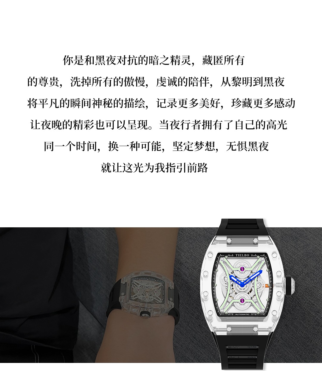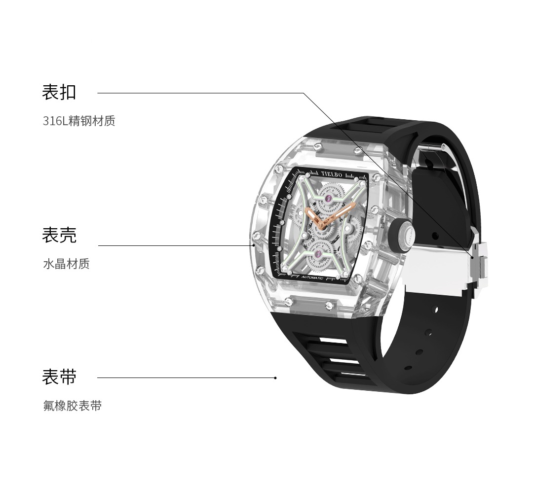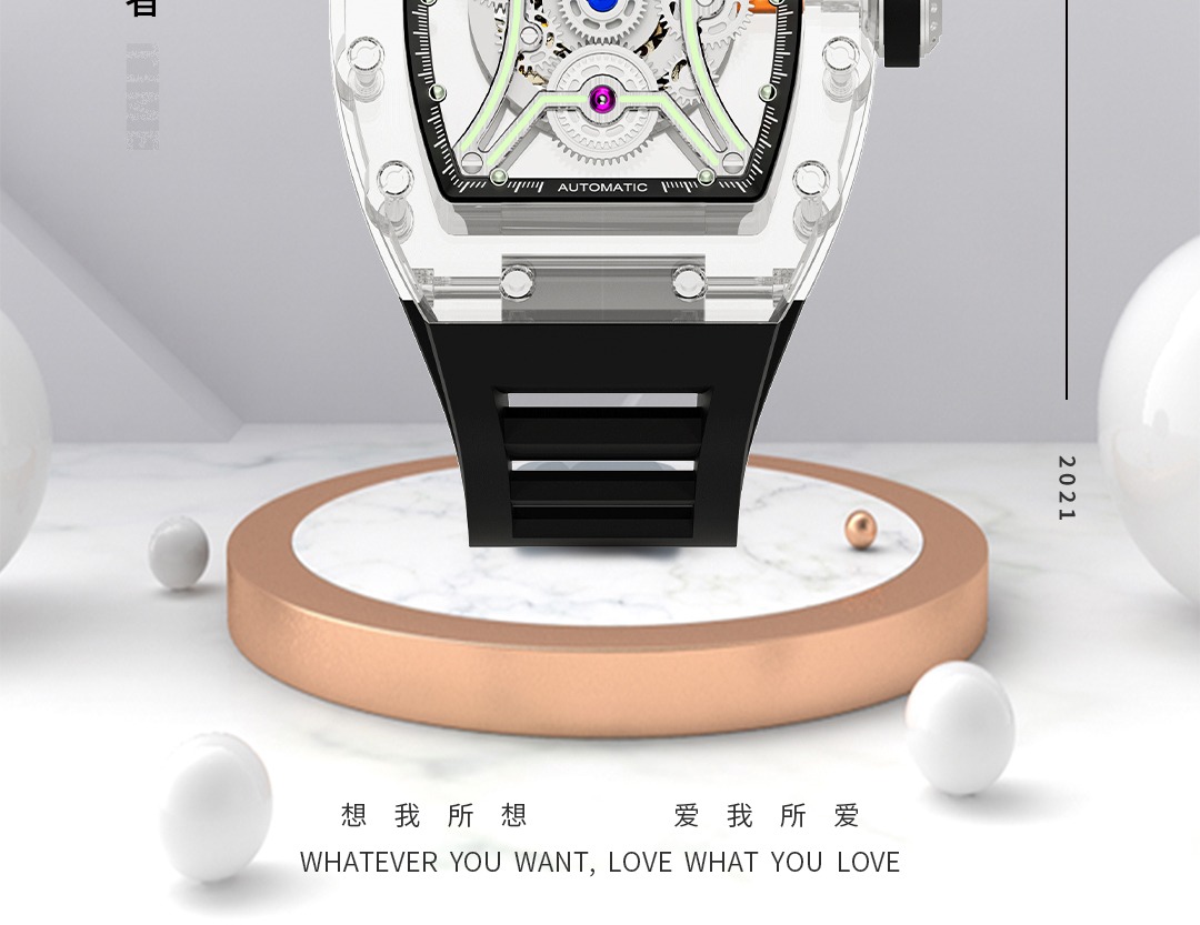 理查德新款男士机械表氚气十大品牌正品运动手表女透明男表潮