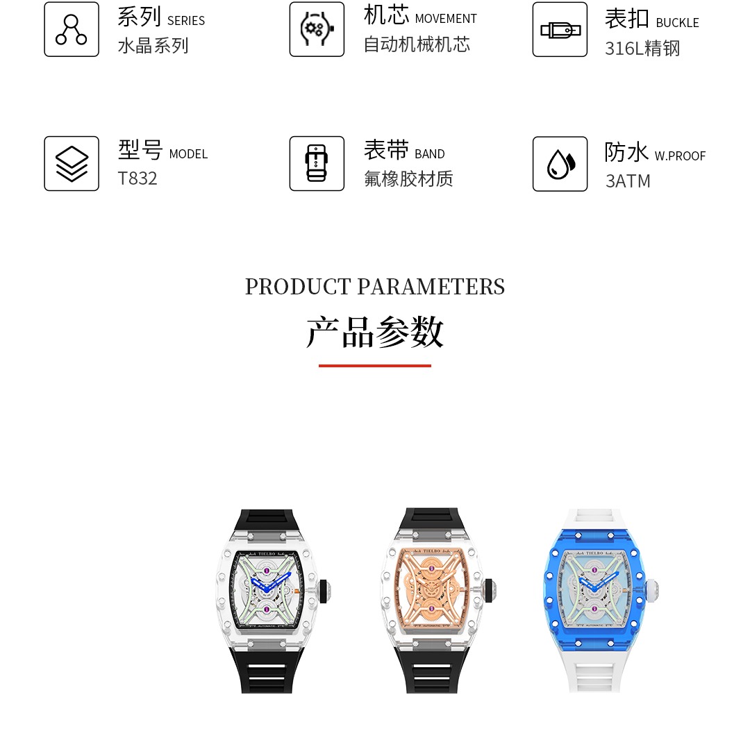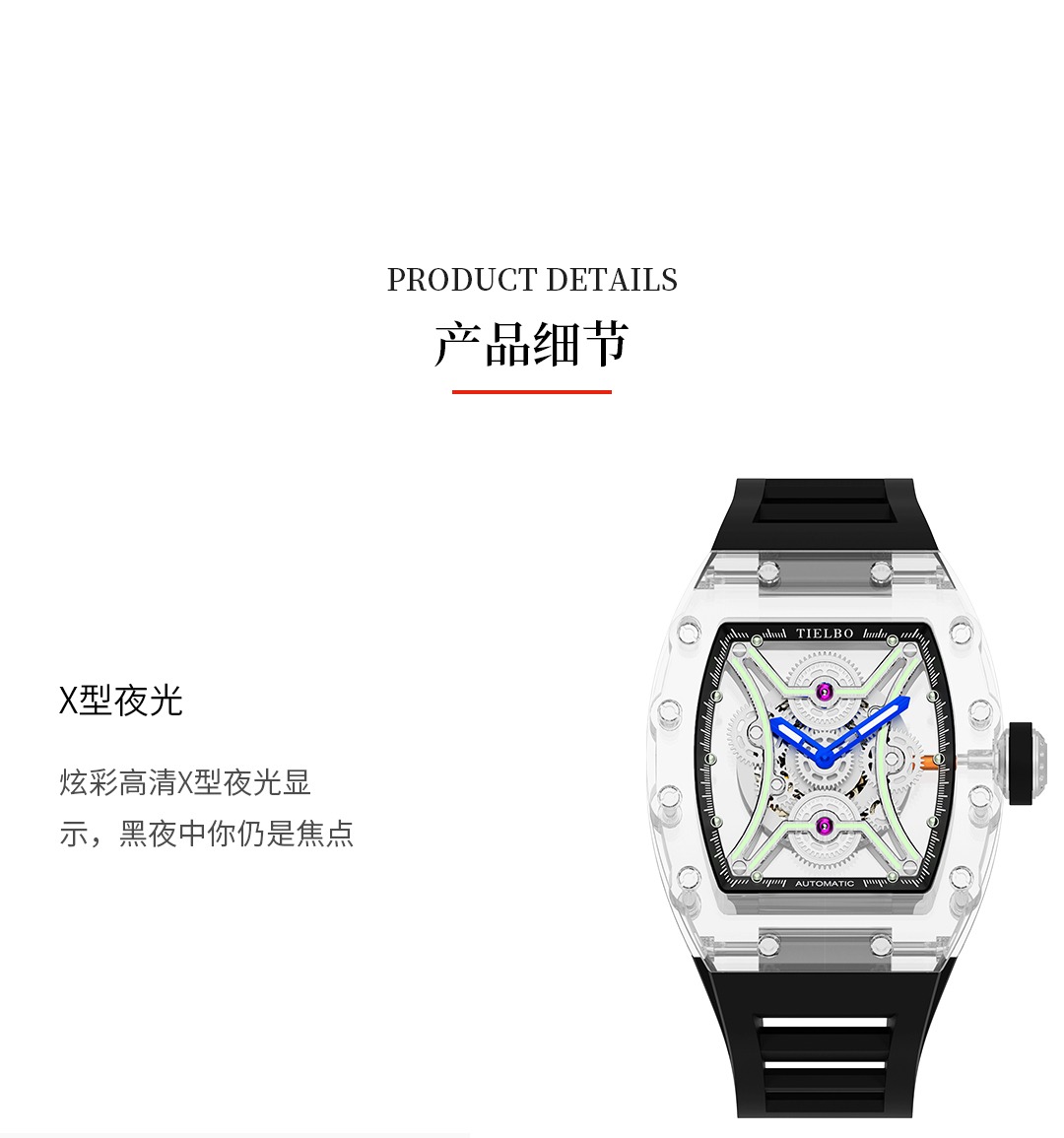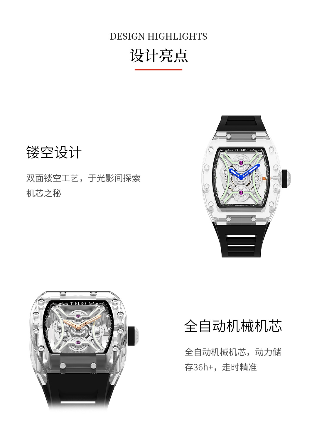 理查德新款男士机械表氚气十大品牌正品运动手表女透明男表潮