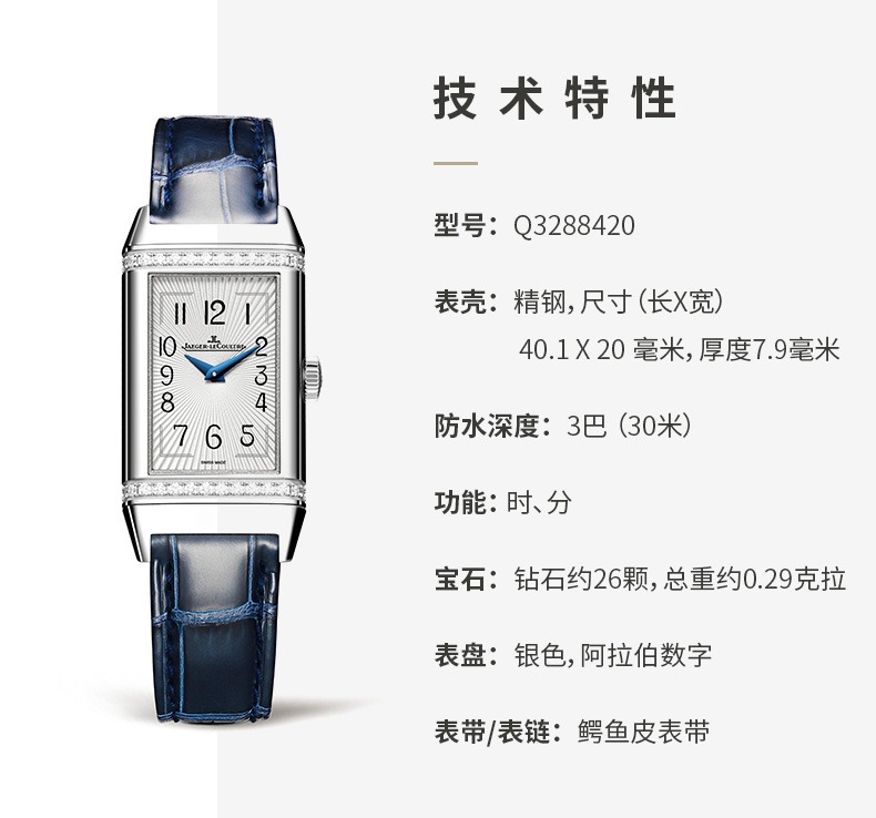 JAEGER-LECOULTRE积家翻转系列 钻石银色表盘手表女