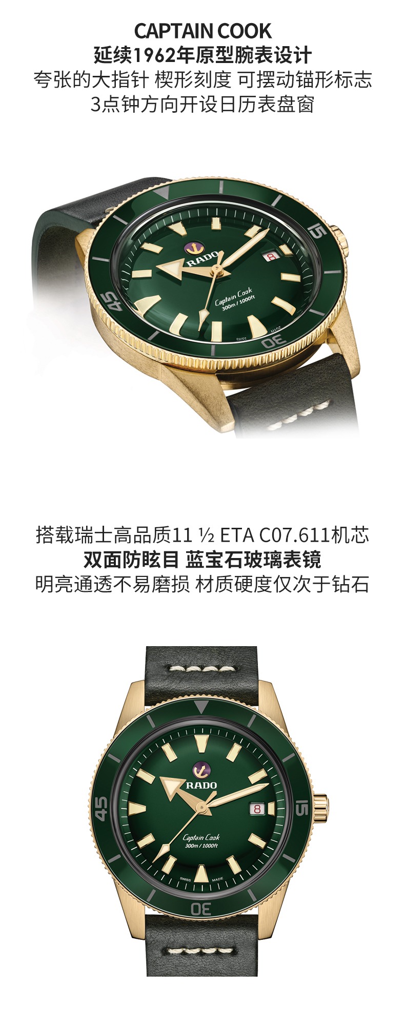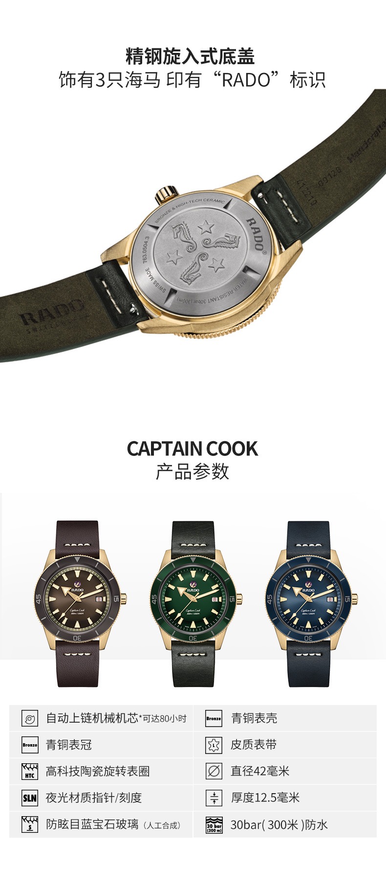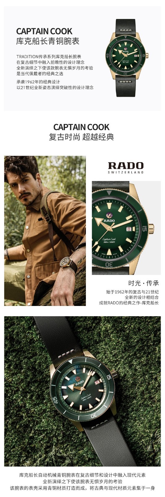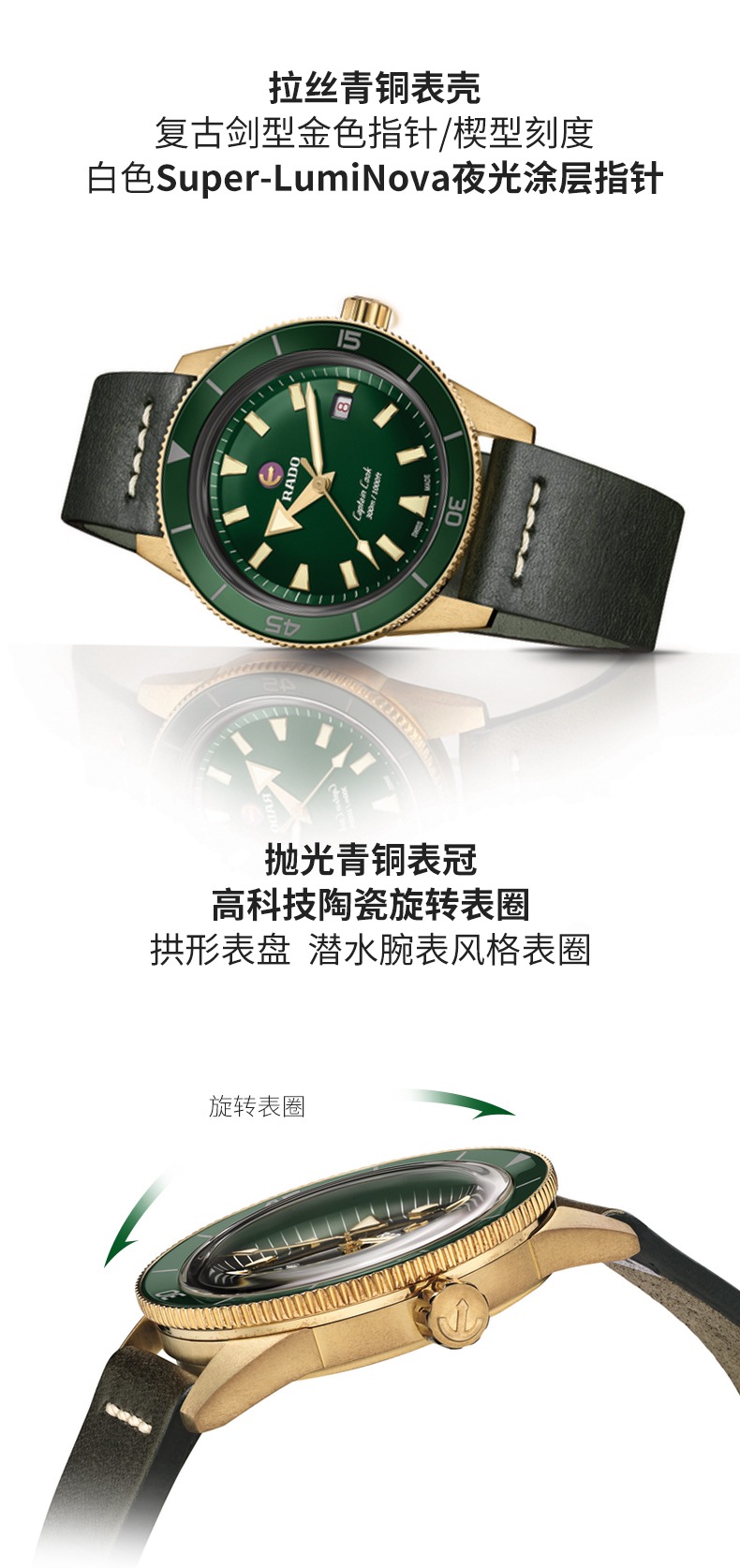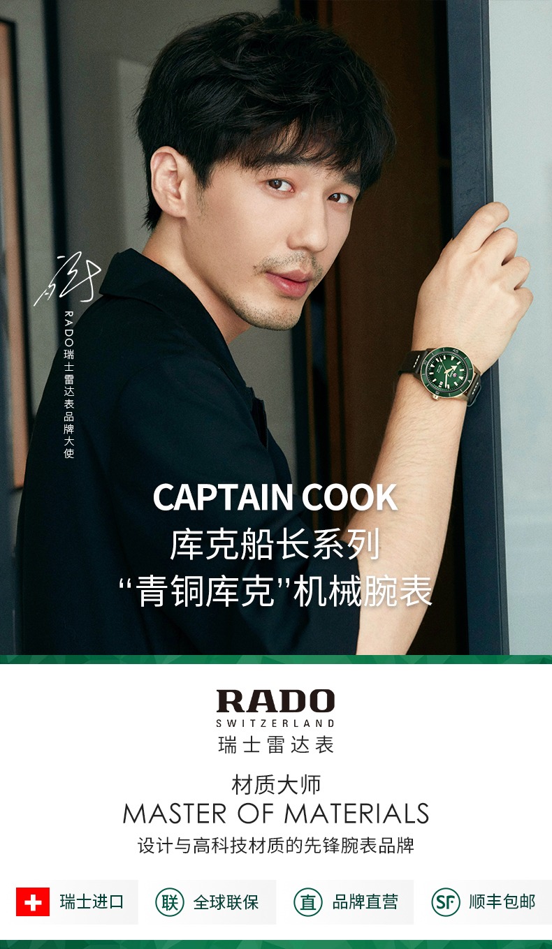 白宇同款Rado瑞士雷达表库克船长陶瓷青铜库克时尚自动机械男手表