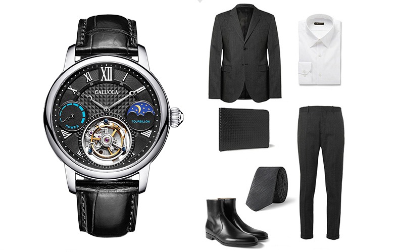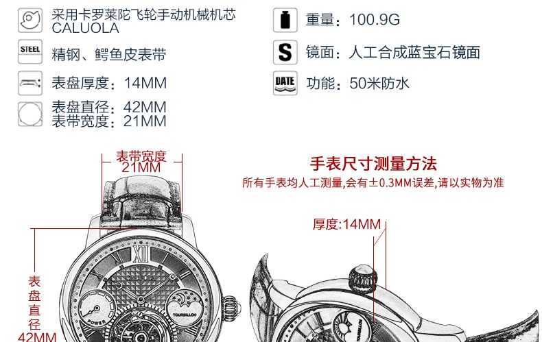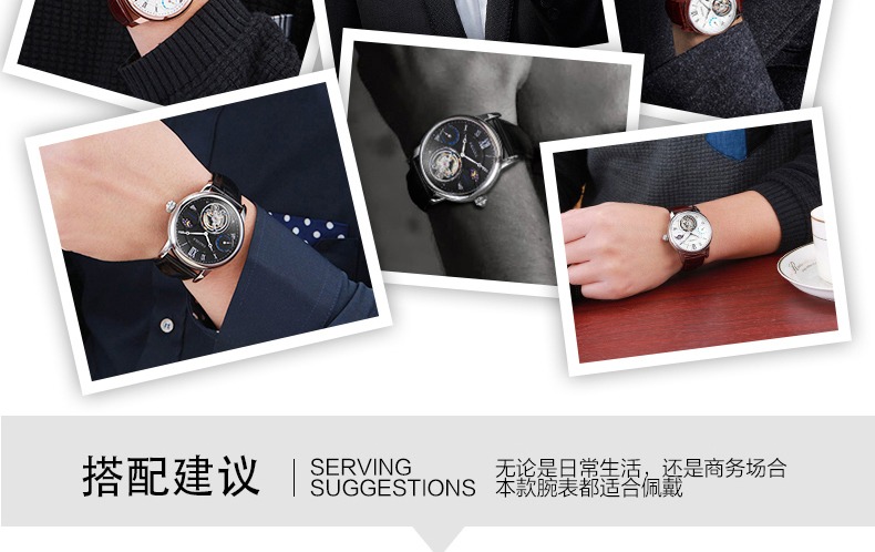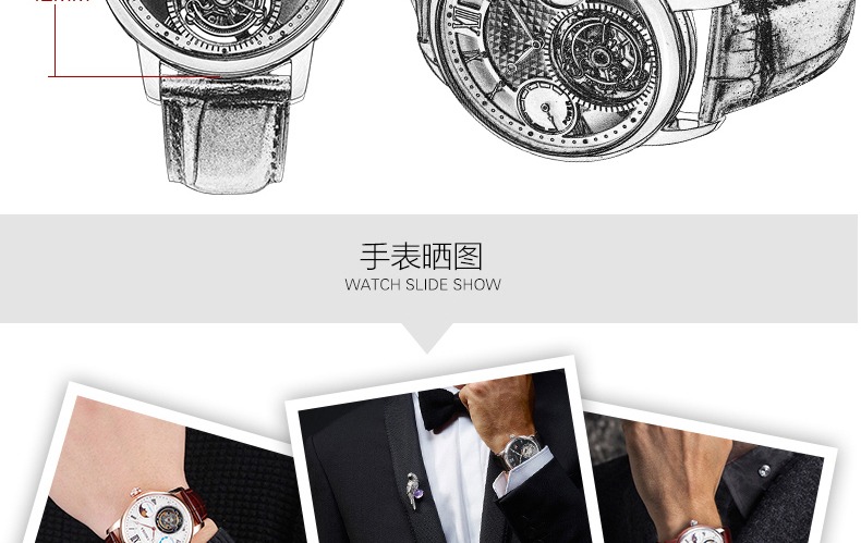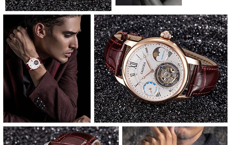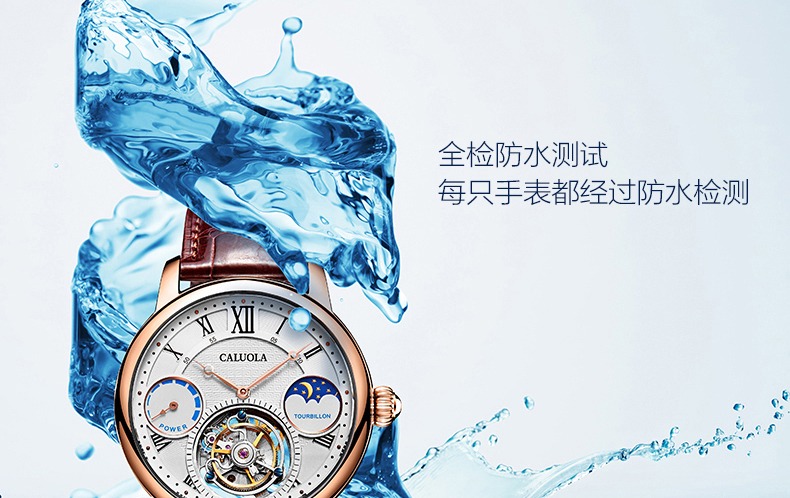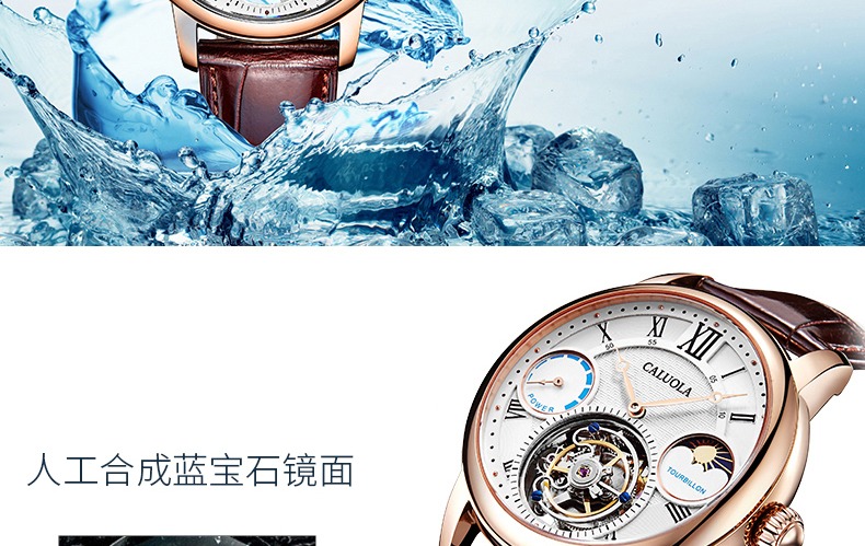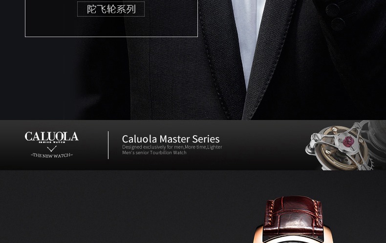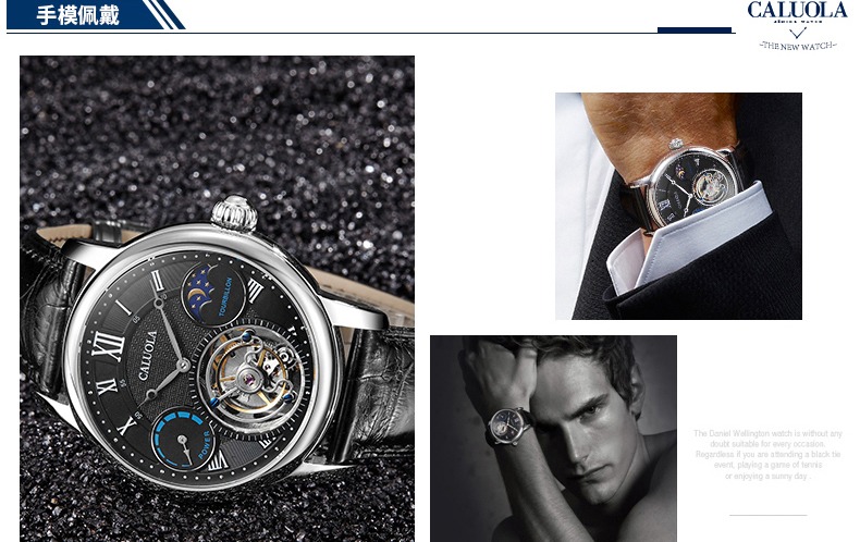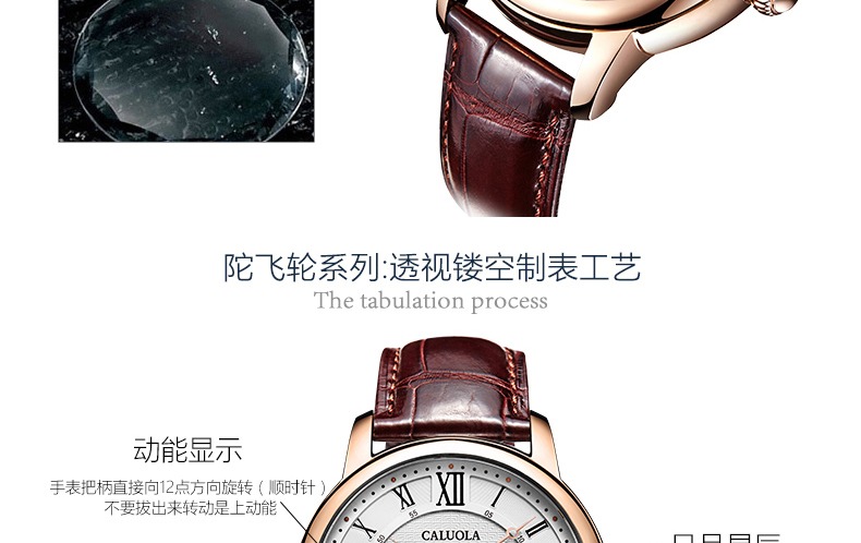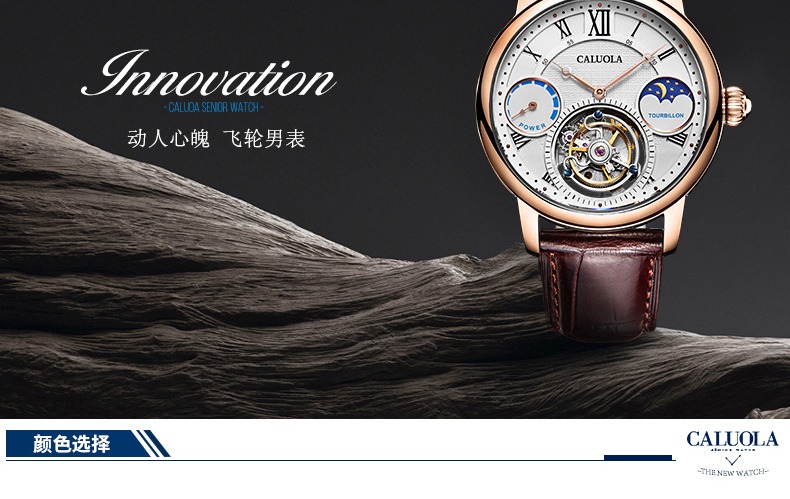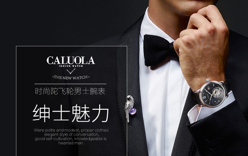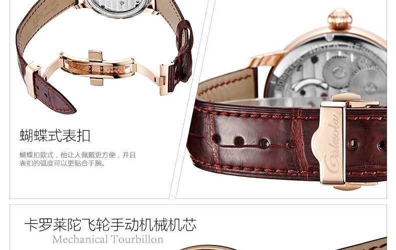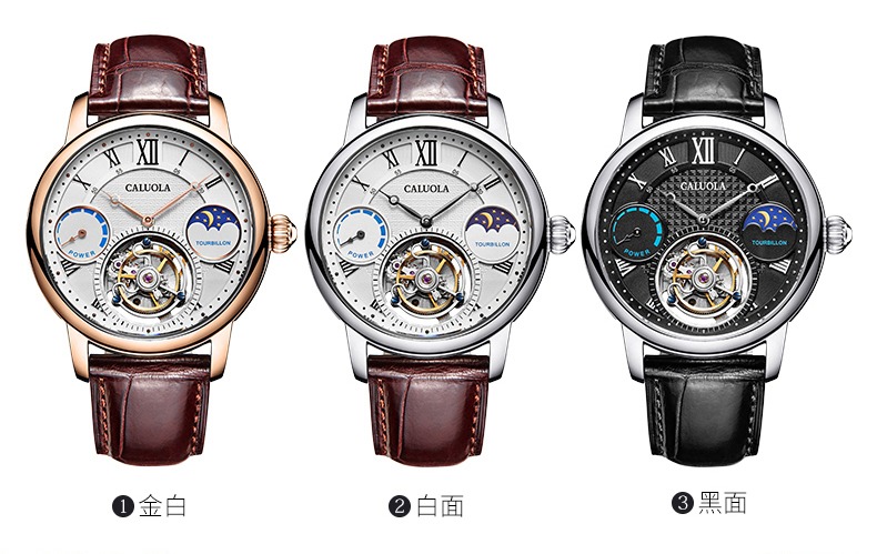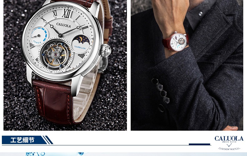 镇店之宝卡罗莱陀飞轮机械男表皮带男士手表品牌正品时尚商务防水