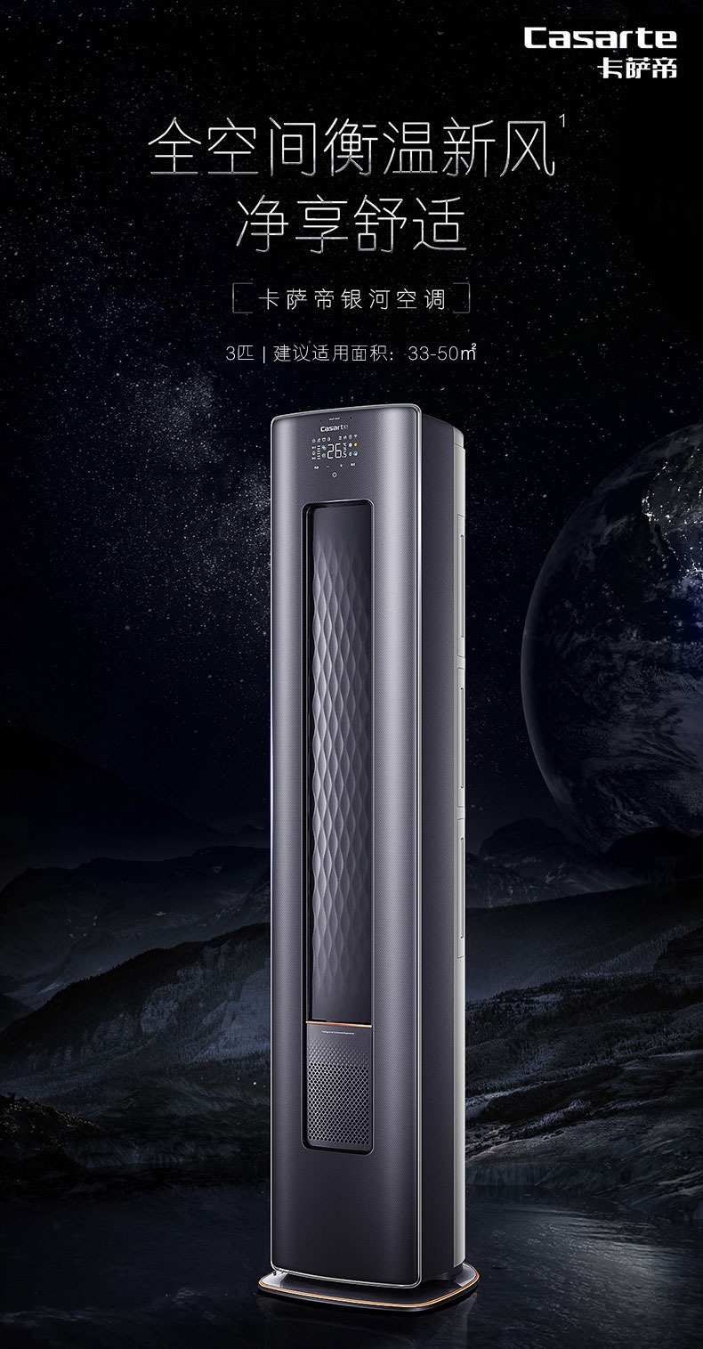 【新风】卡萨帝3匹变频一级能效恒温新风柜机空调银河72GAB