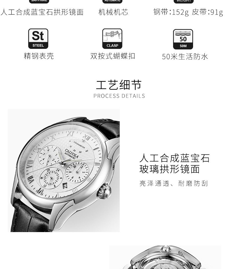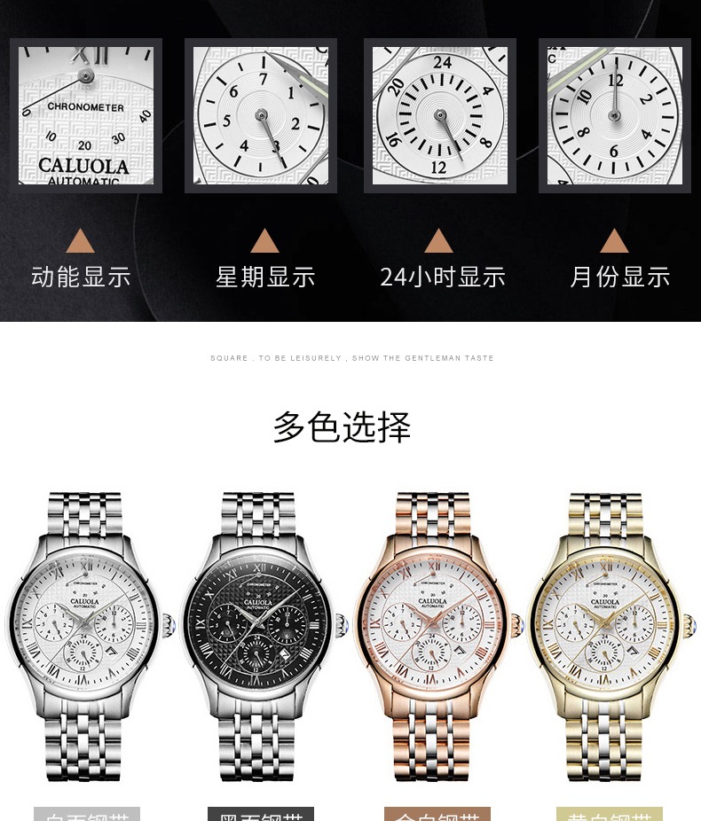 卡罗莱全自动机械表时尚男士手表正品商务男表官方新款防水腕表潮