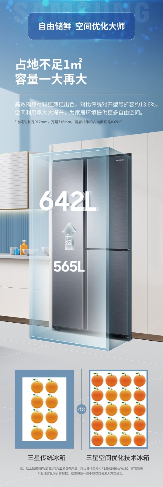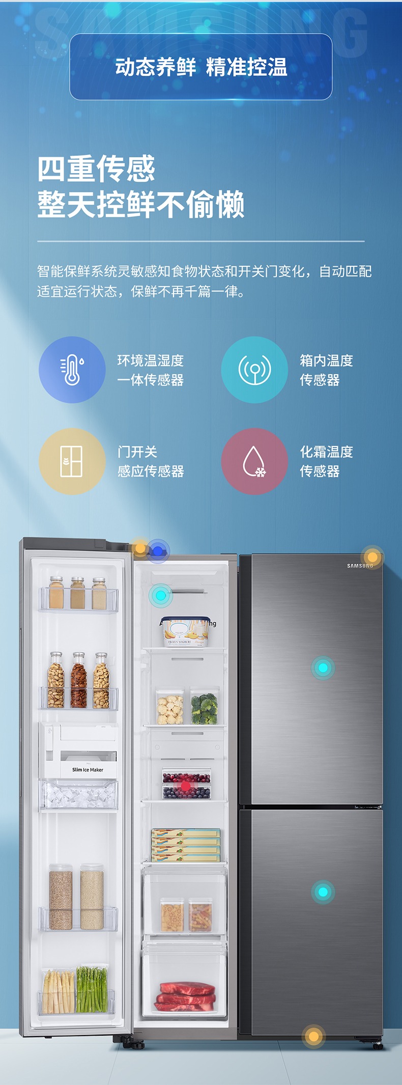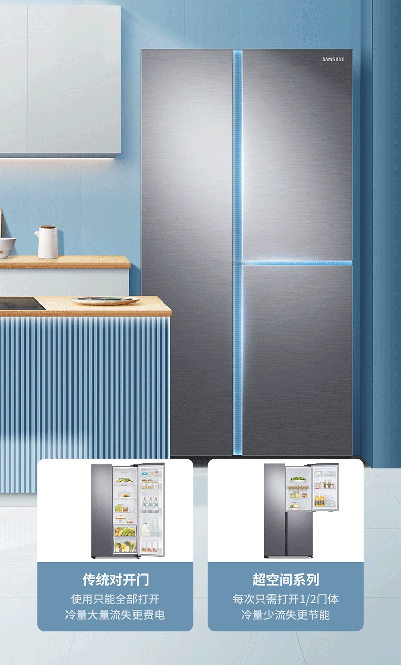 三星 642升大容量T型门风冷无霜保鲜变频家用冰箱 RS63R5587M9