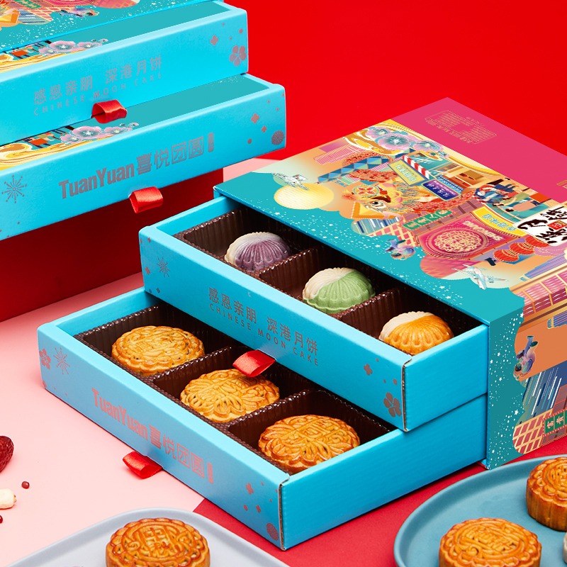 深港中秋节月饼礼盒装送礼广式蛋黄五仁流心多口味团购一整箱批发