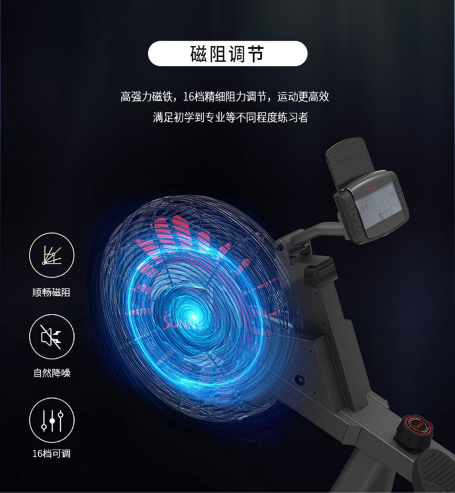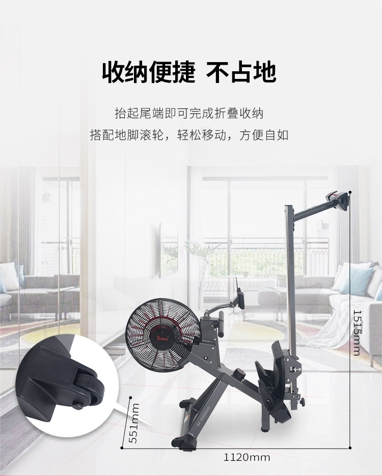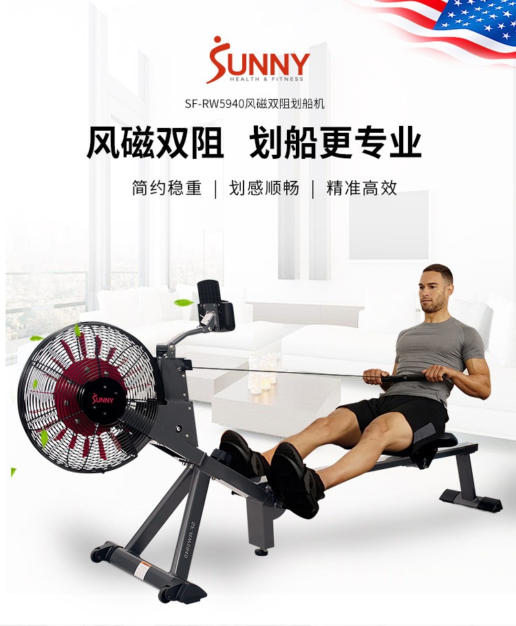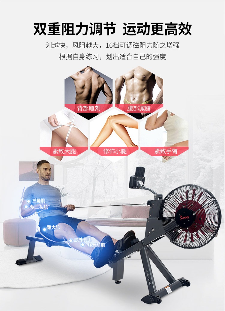 美国SUNNY划船机家用风阻磁控划船器健身器材可折叠静音纸牌屋