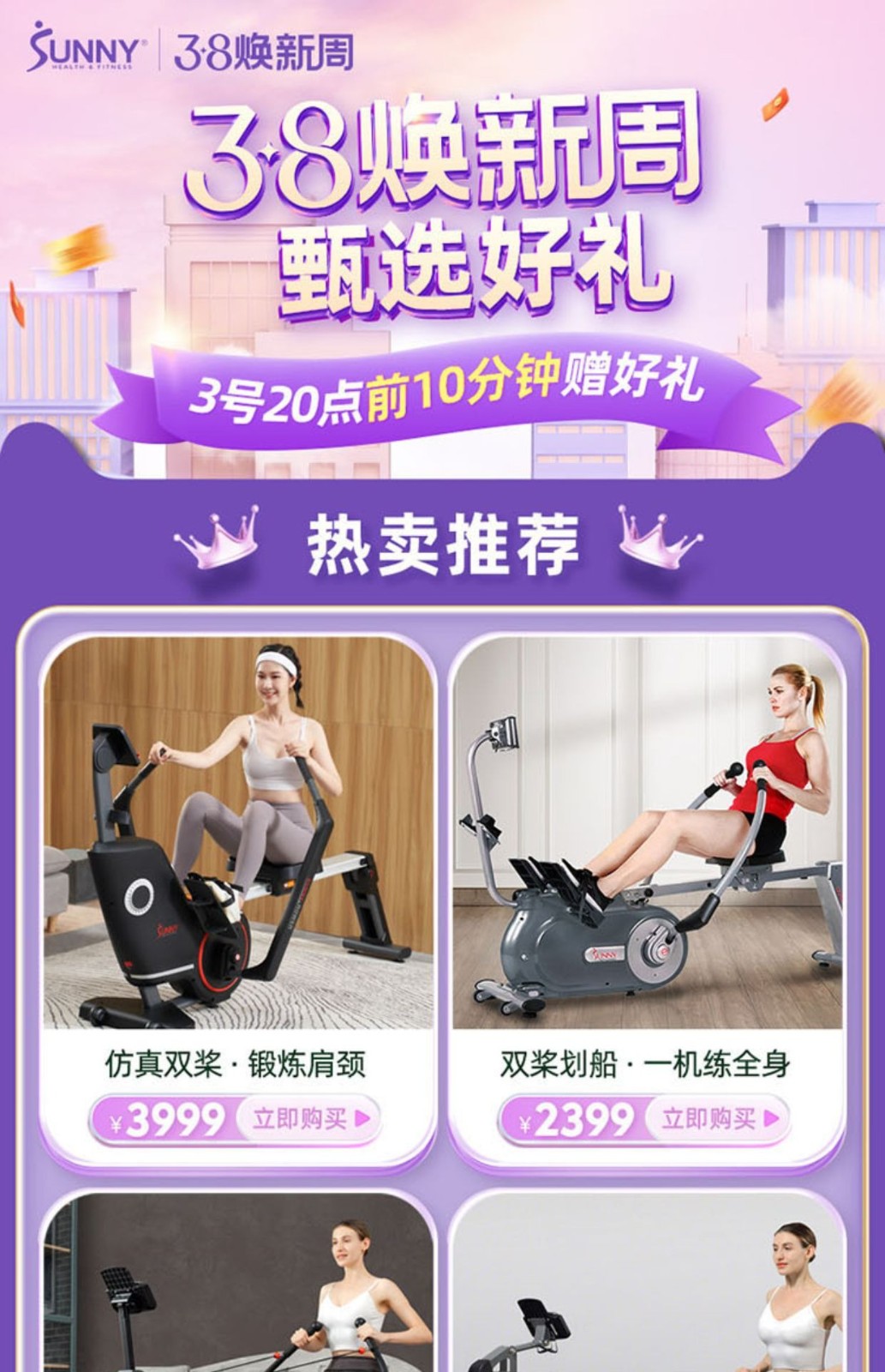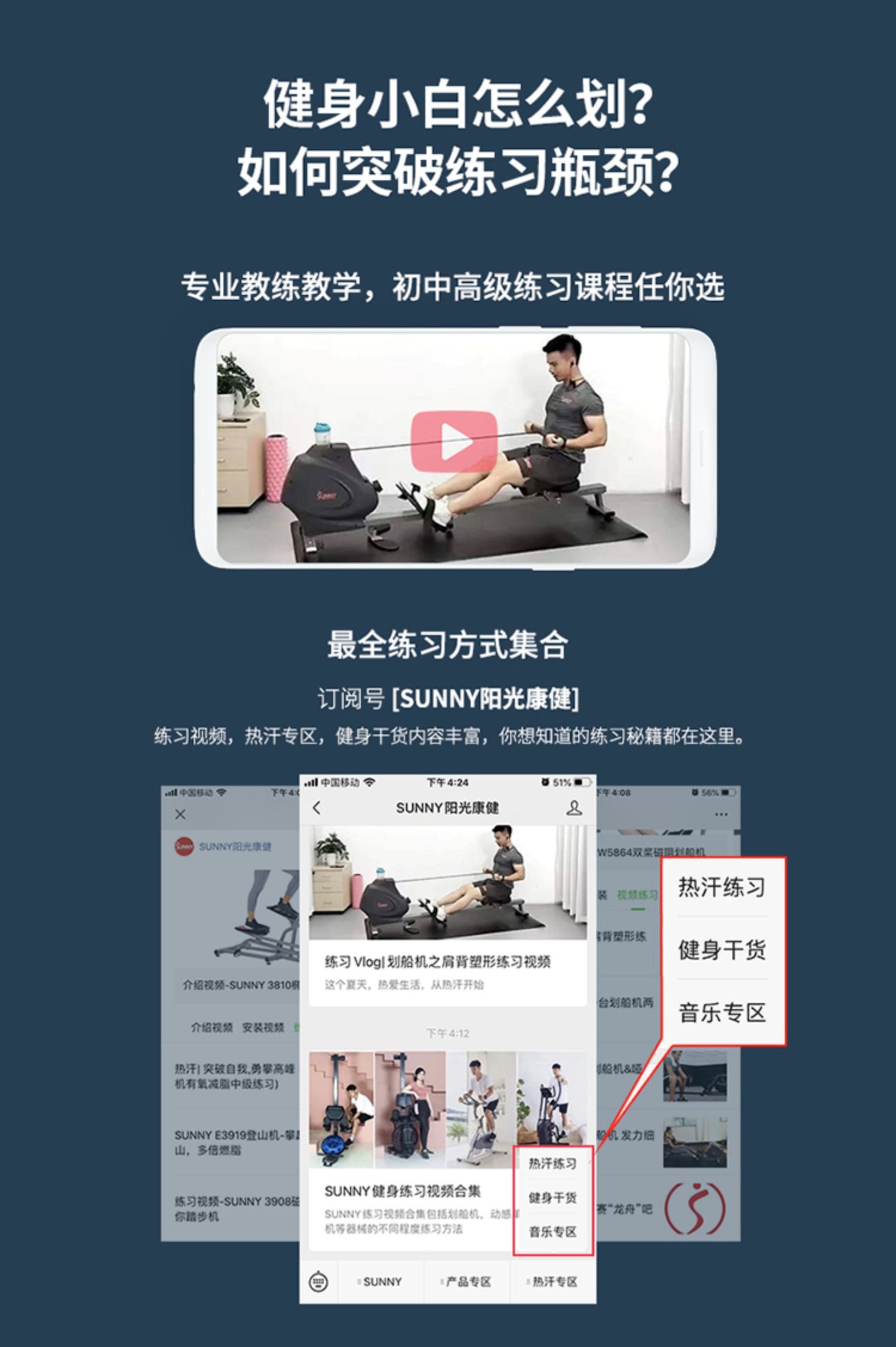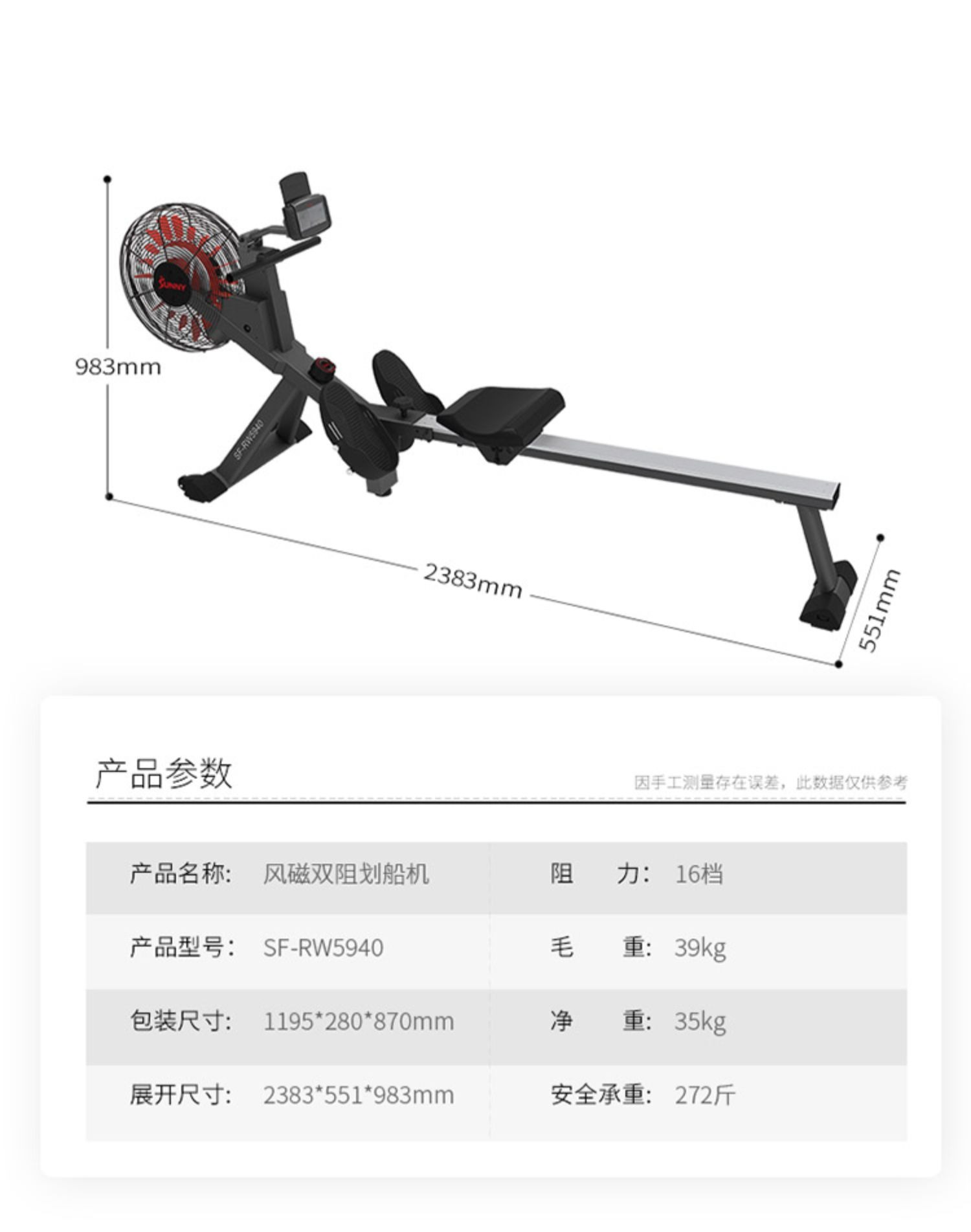 美国SUNNY划船机家用风阻磁控划船器健身器材可折叠静音纸牌屋