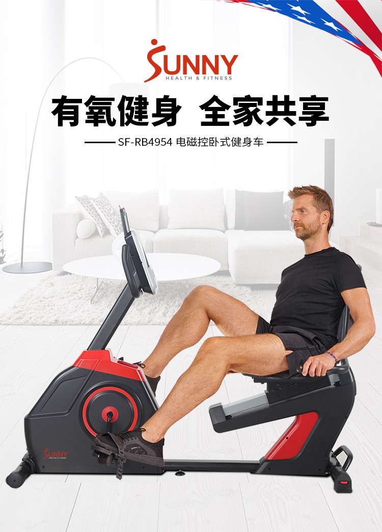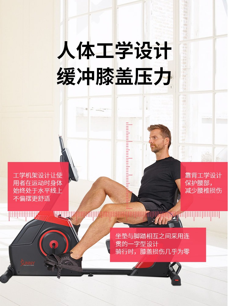 美国SUNNY卧式健身车高端商务动感单车家用 减肥器健身房锻炼器材