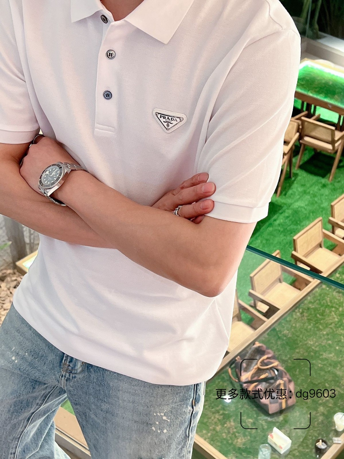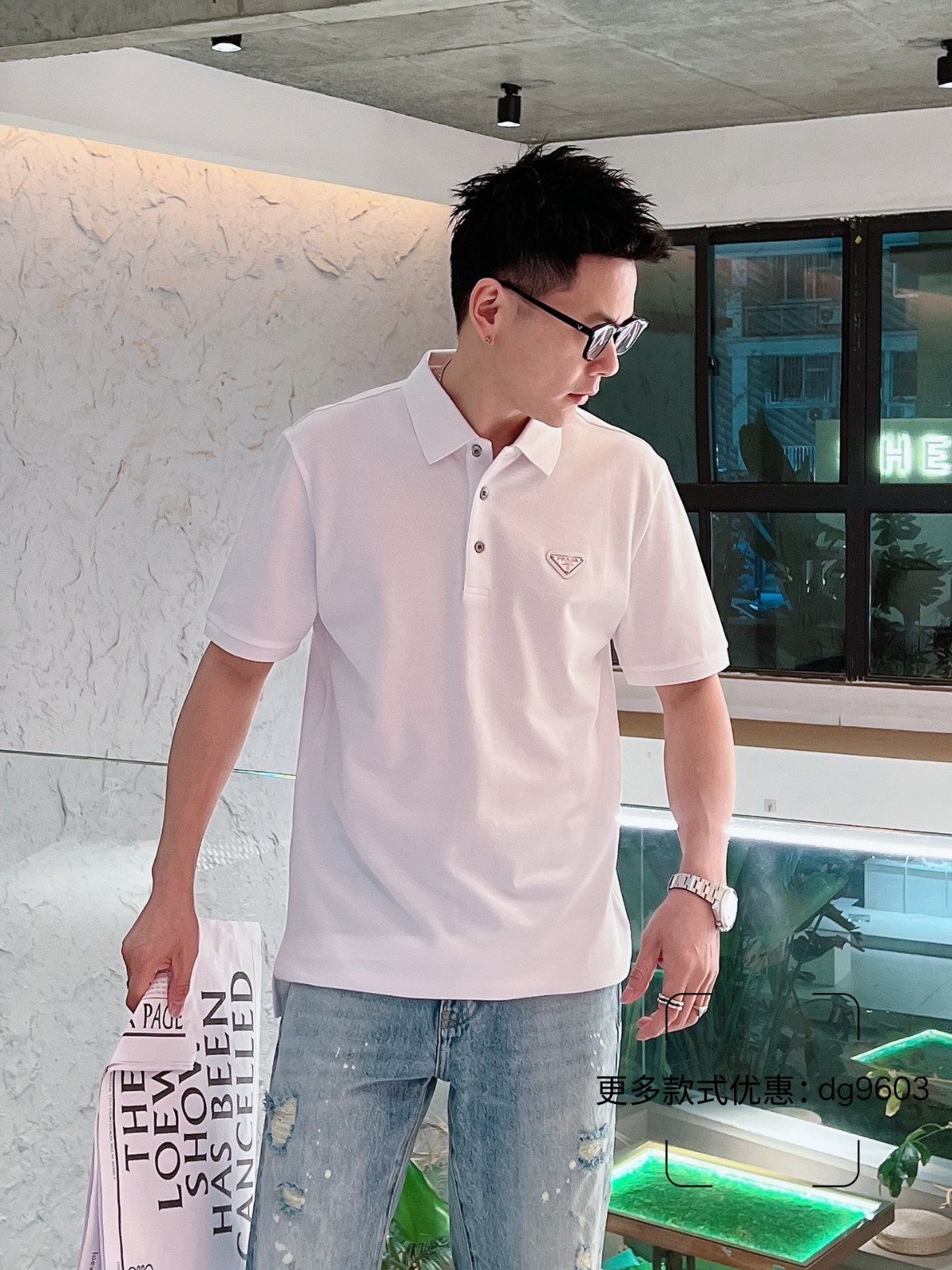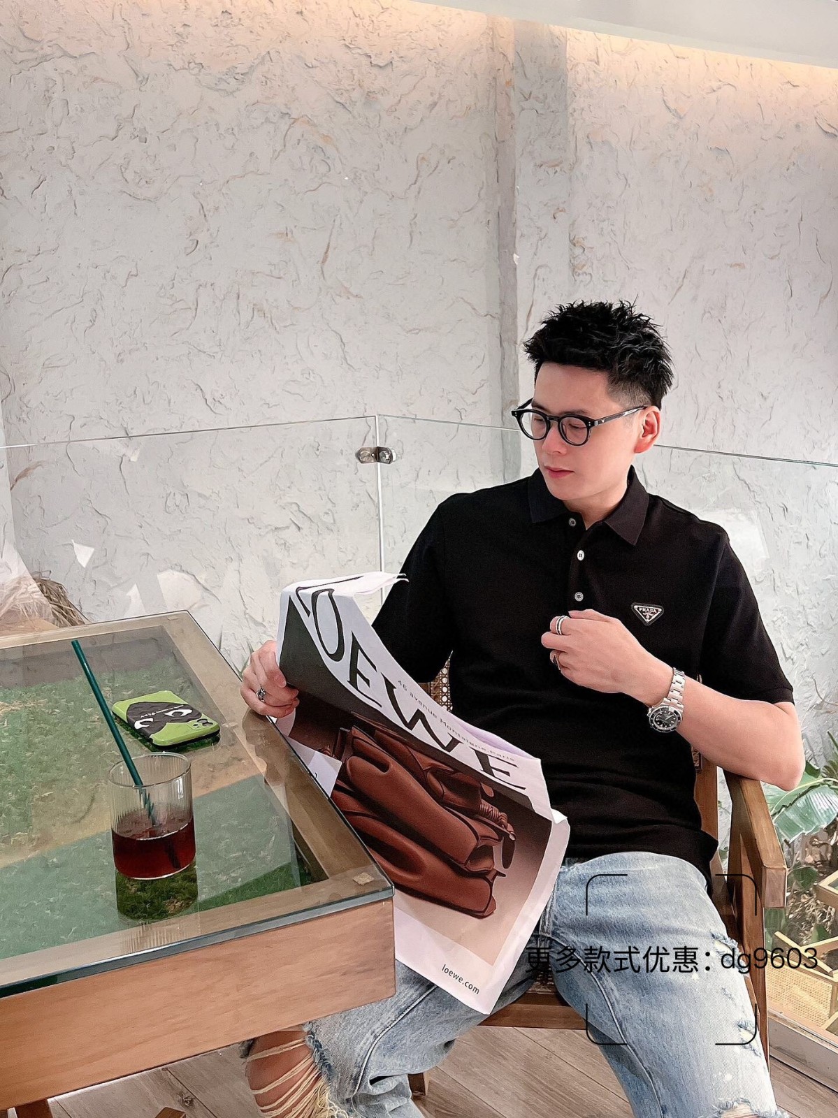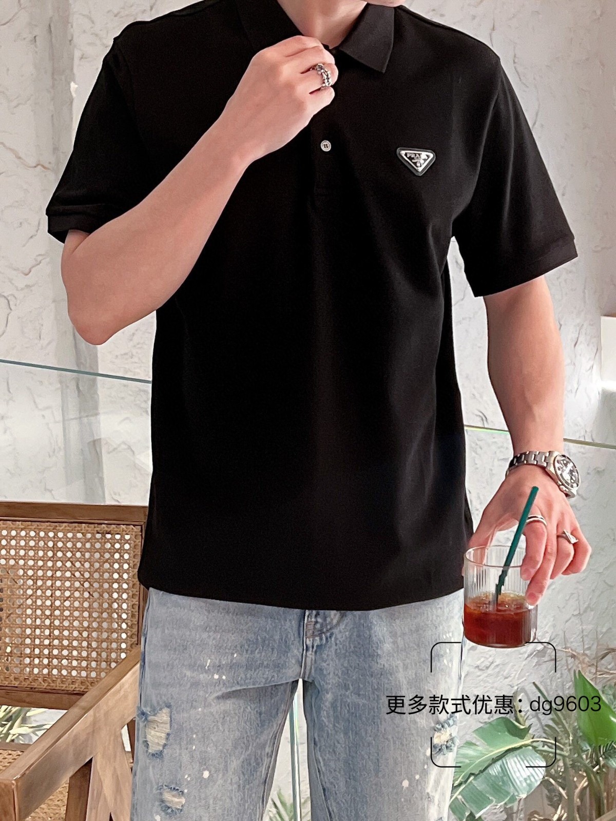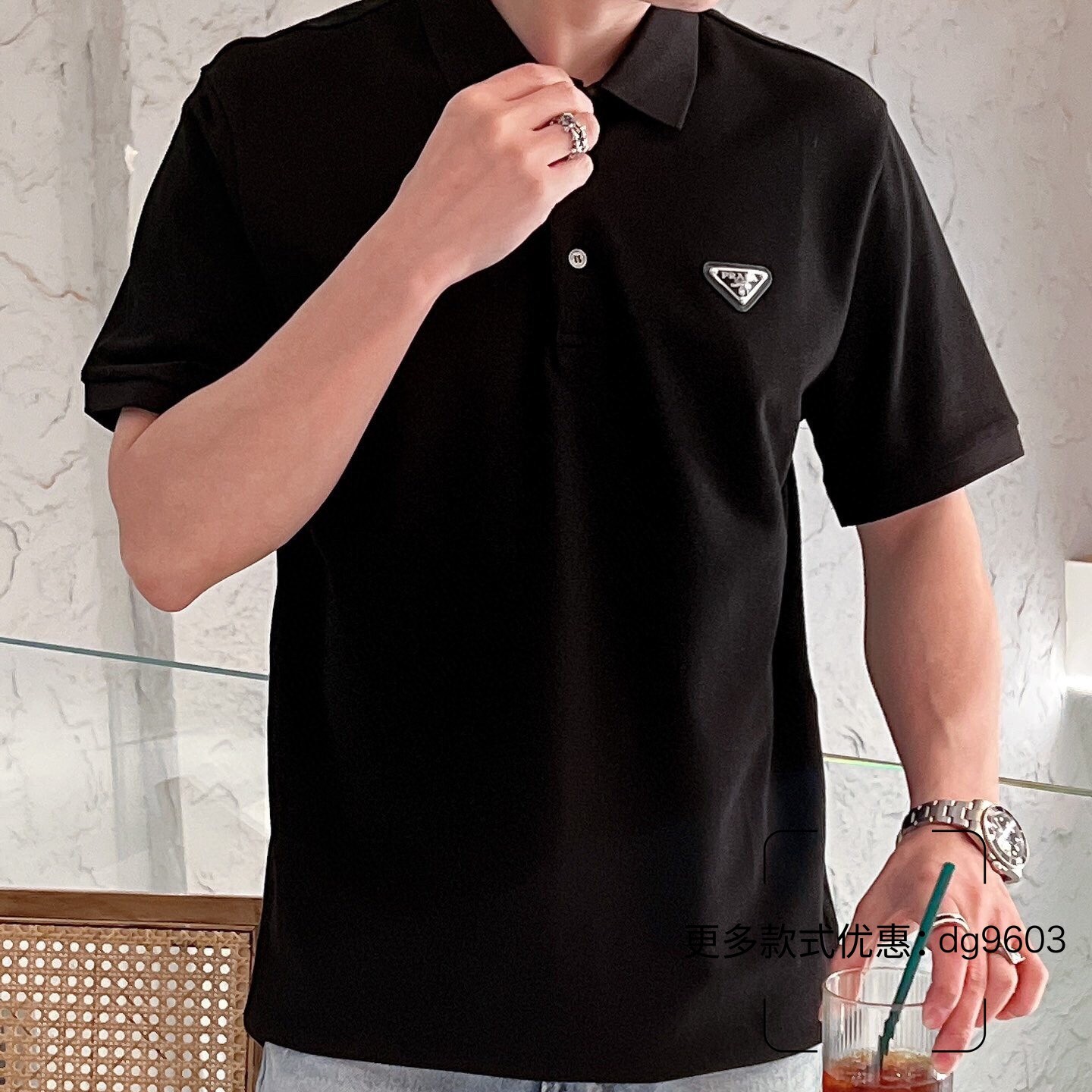 Prada/普拉达男士POLO衫 经典三角标商务休闲纯色翻领短袖T恤男装