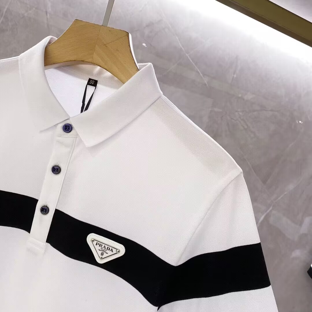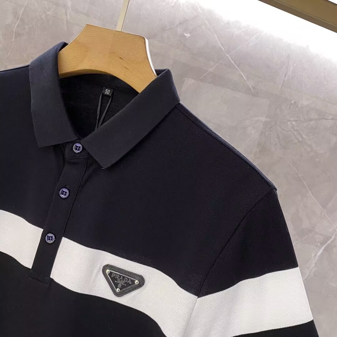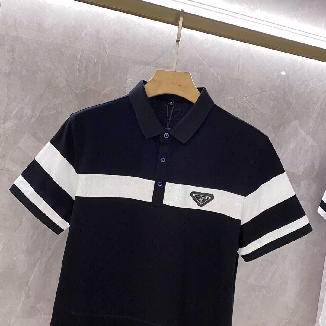 新款Prada/普拉达短袖POLO衫男 商务休闲三角徽标翻领T恤男装