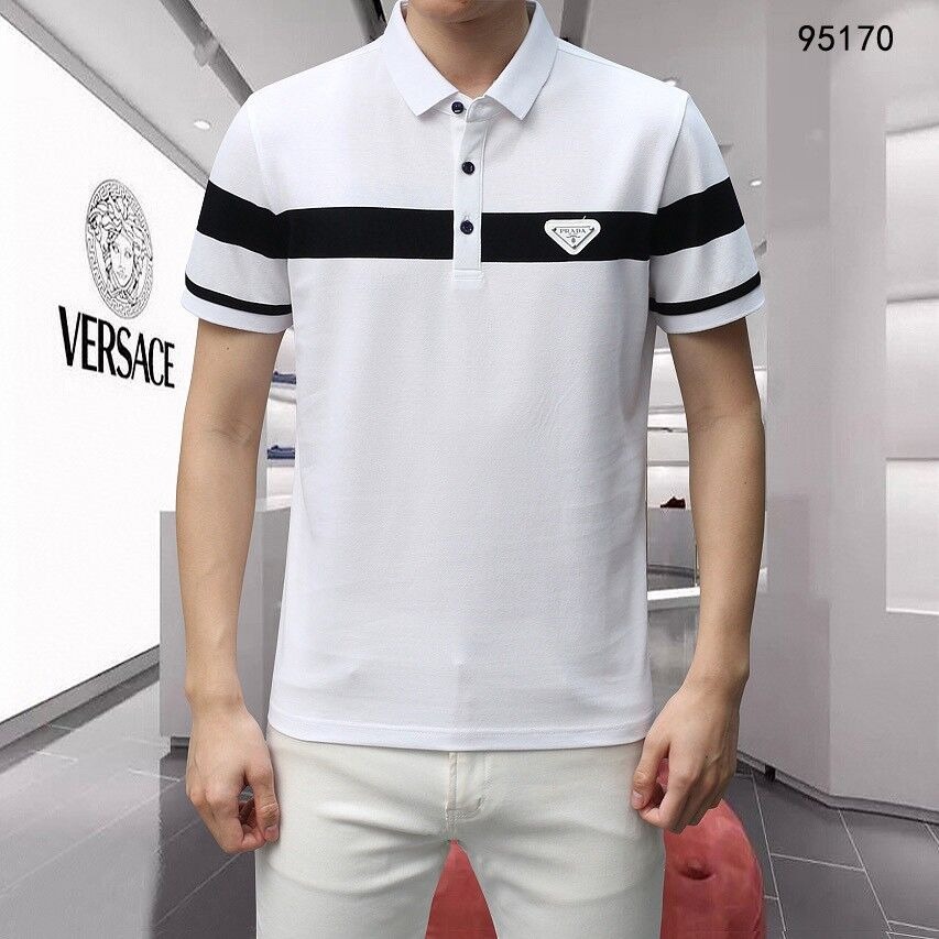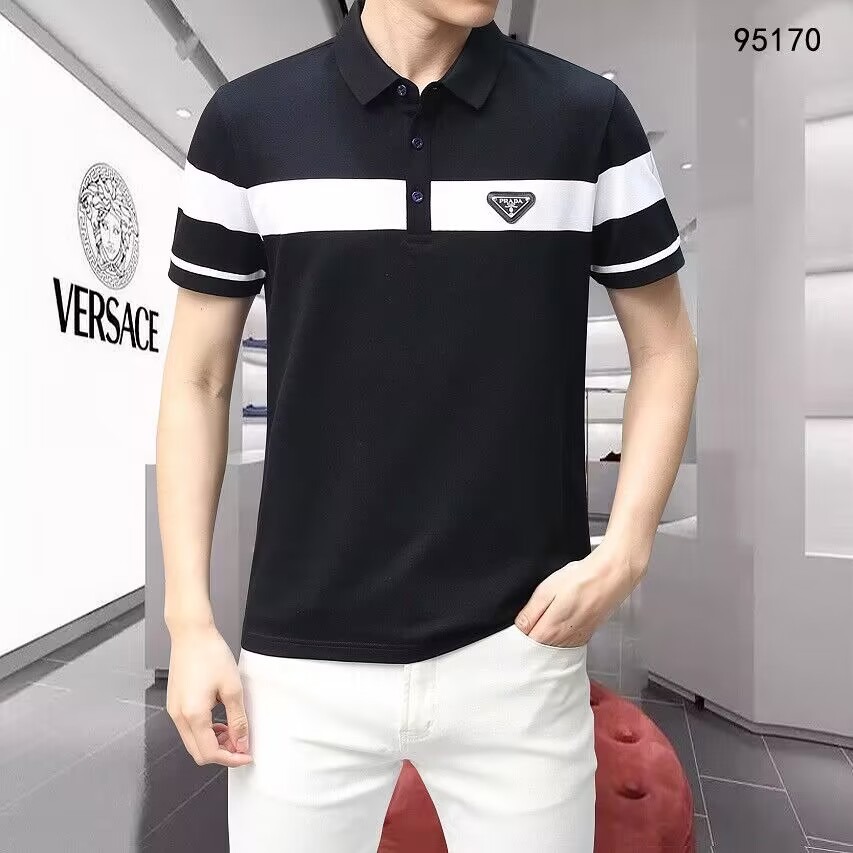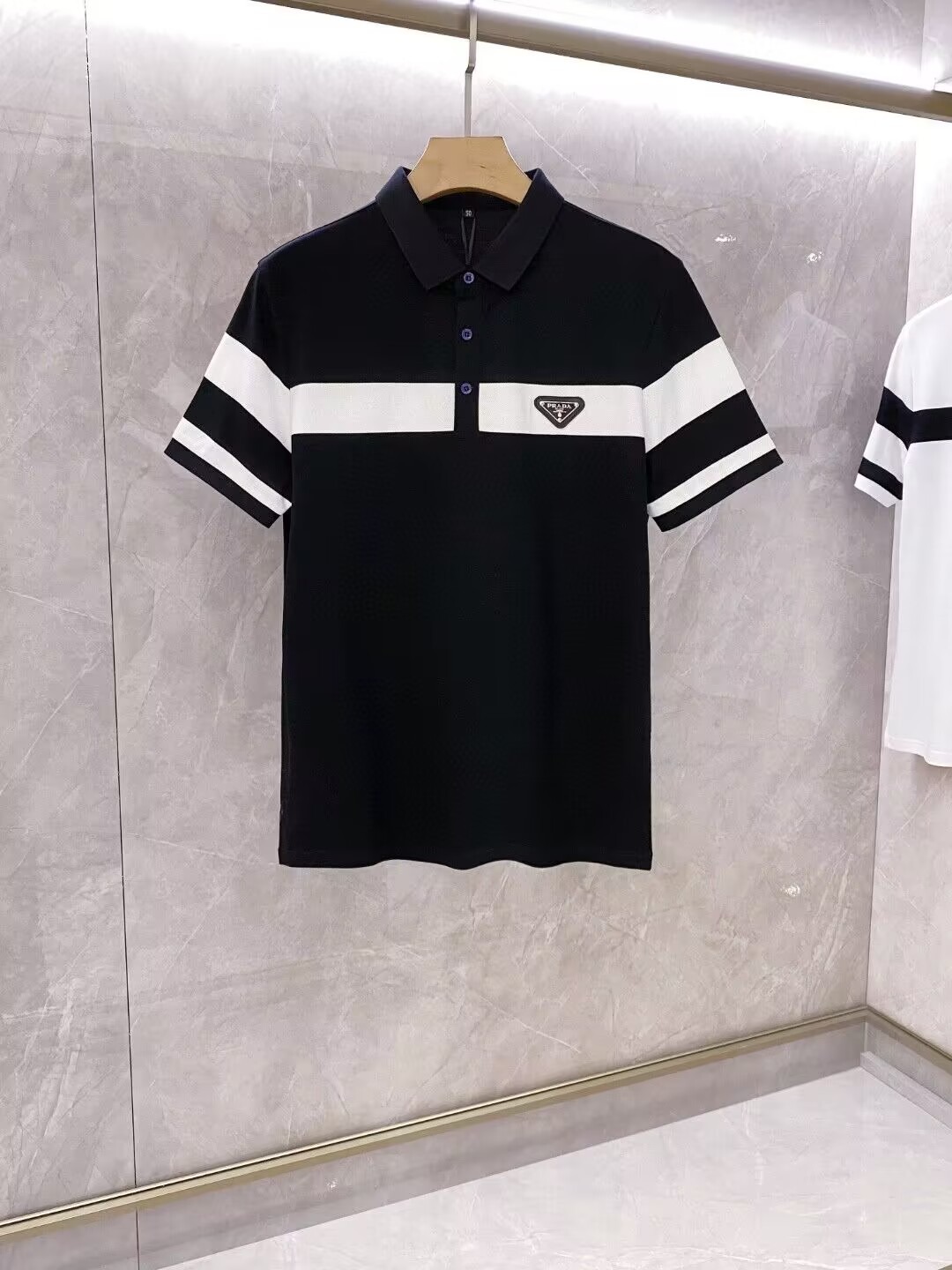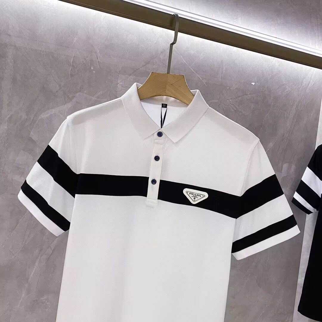 新款Prada/普拉达短袖POLO衫男 商务休闲三角徽标翻领T恤男装
