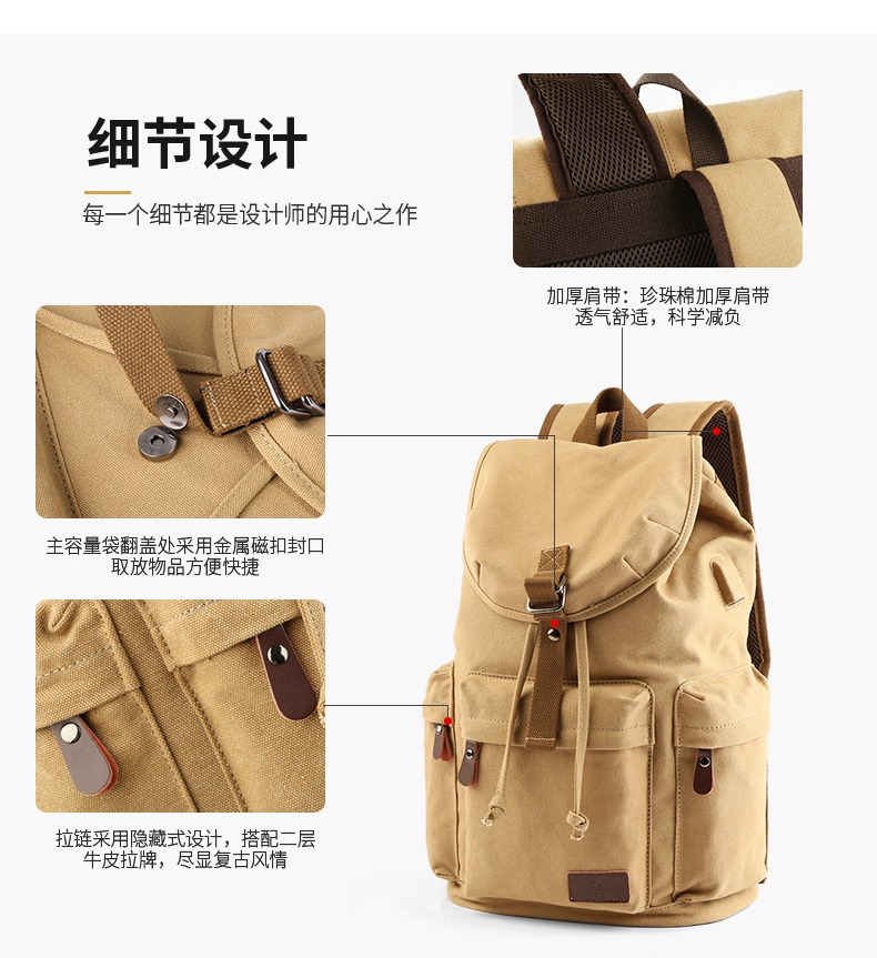 复古男士帆布双肩包高中大学生书包潮流休闲大容量旅行包背包男包