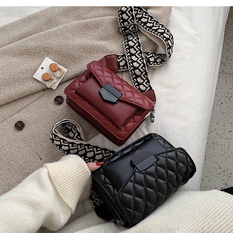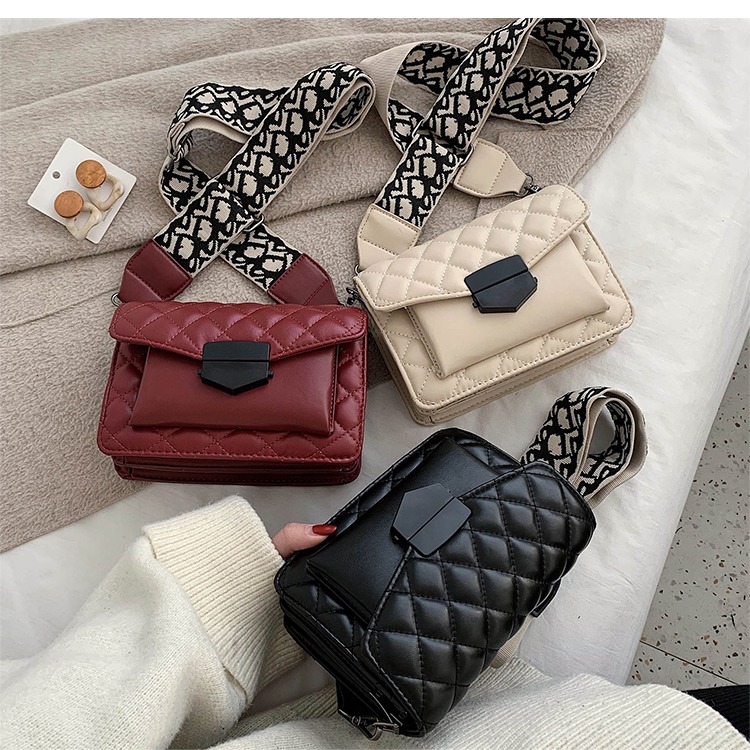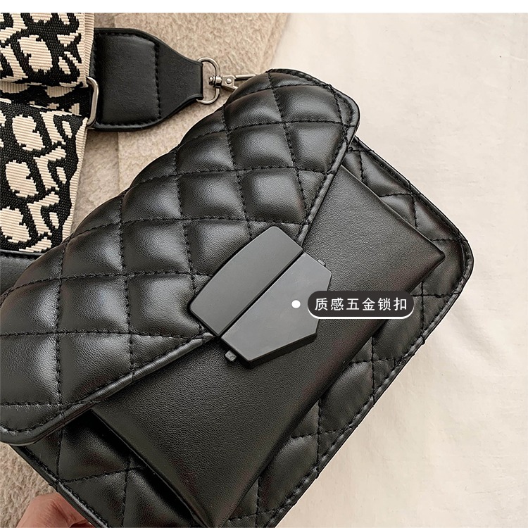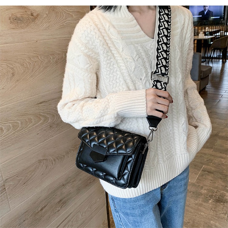 黑色真皮宽带斜挎包女百搭ins大容量包包2020新款韩版时尚小方包
