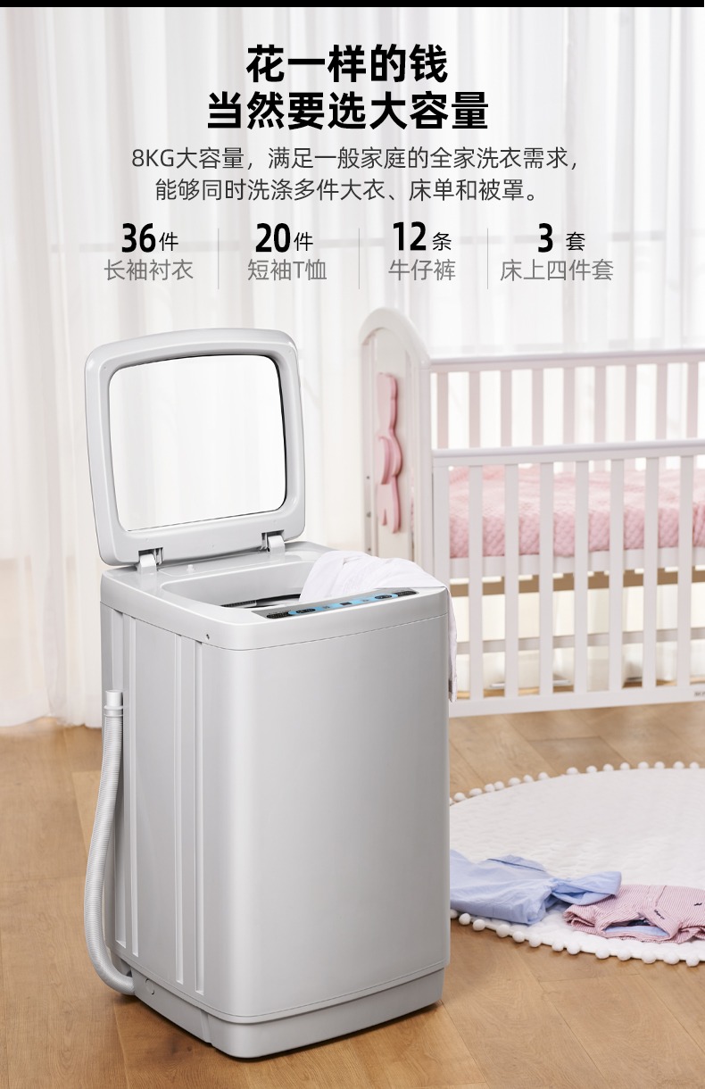 7/8/9KG洗衣机家用小型全自动租房宿舍大容量迷你波轮洗脱一体机