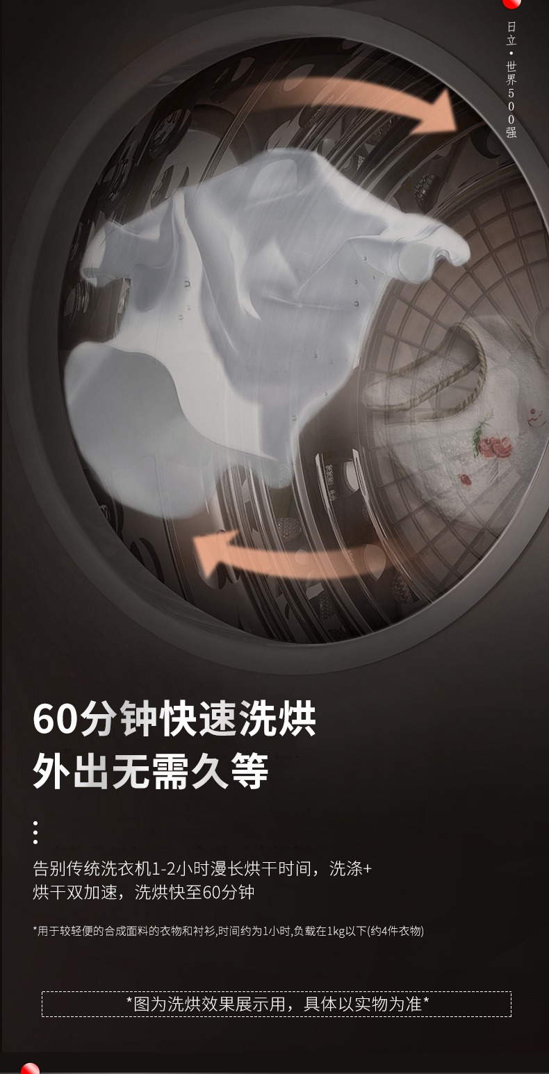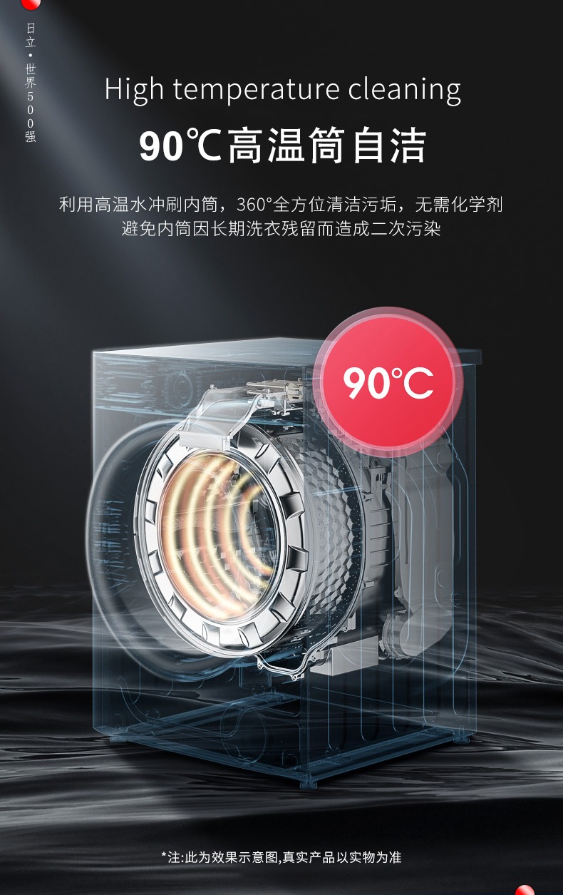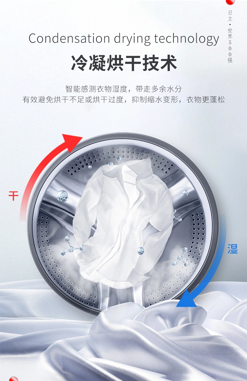 HITACHI/日立8KG全自动洗衣机薄洗烘干一体滚筒变频家用BD-D80CVE