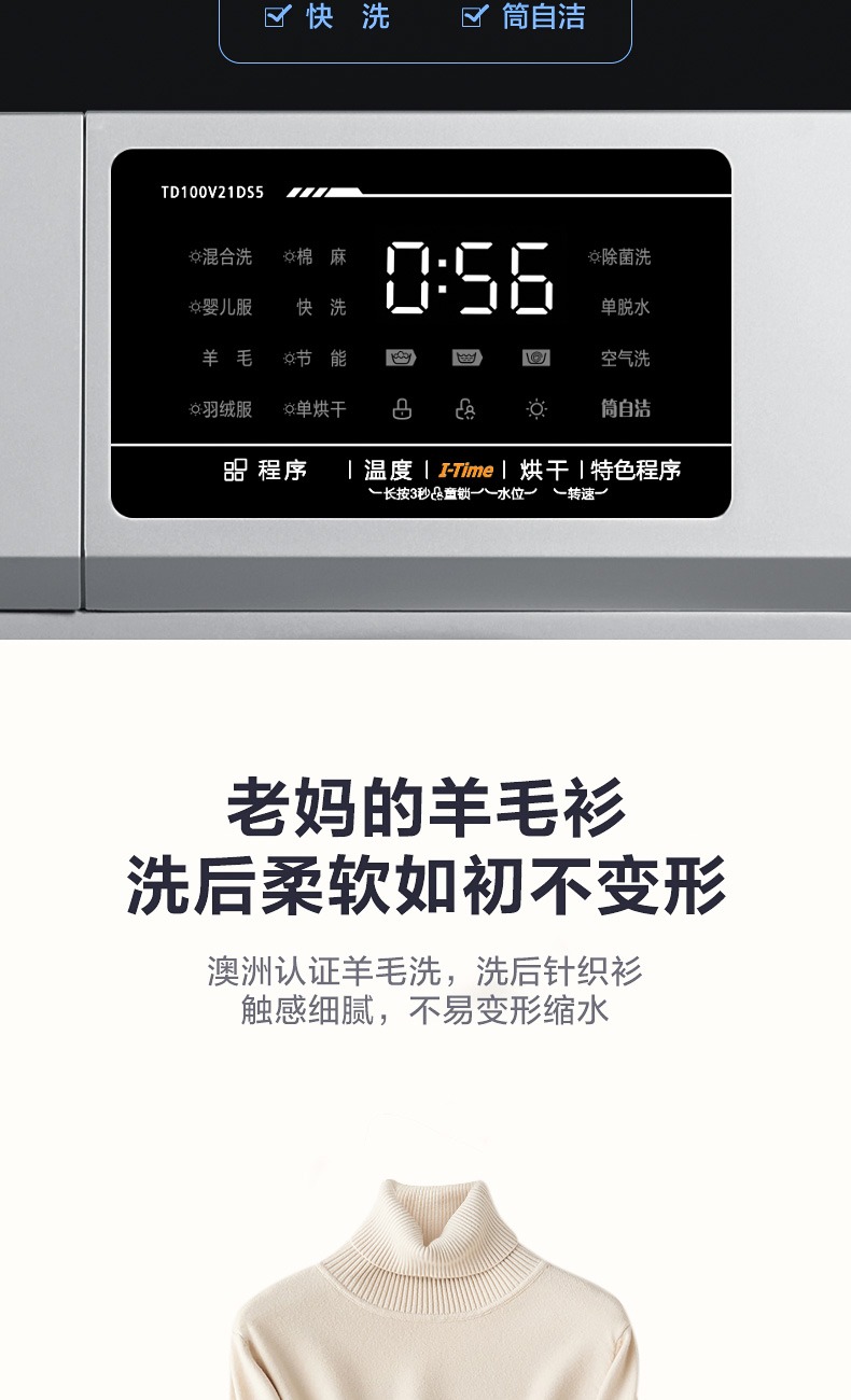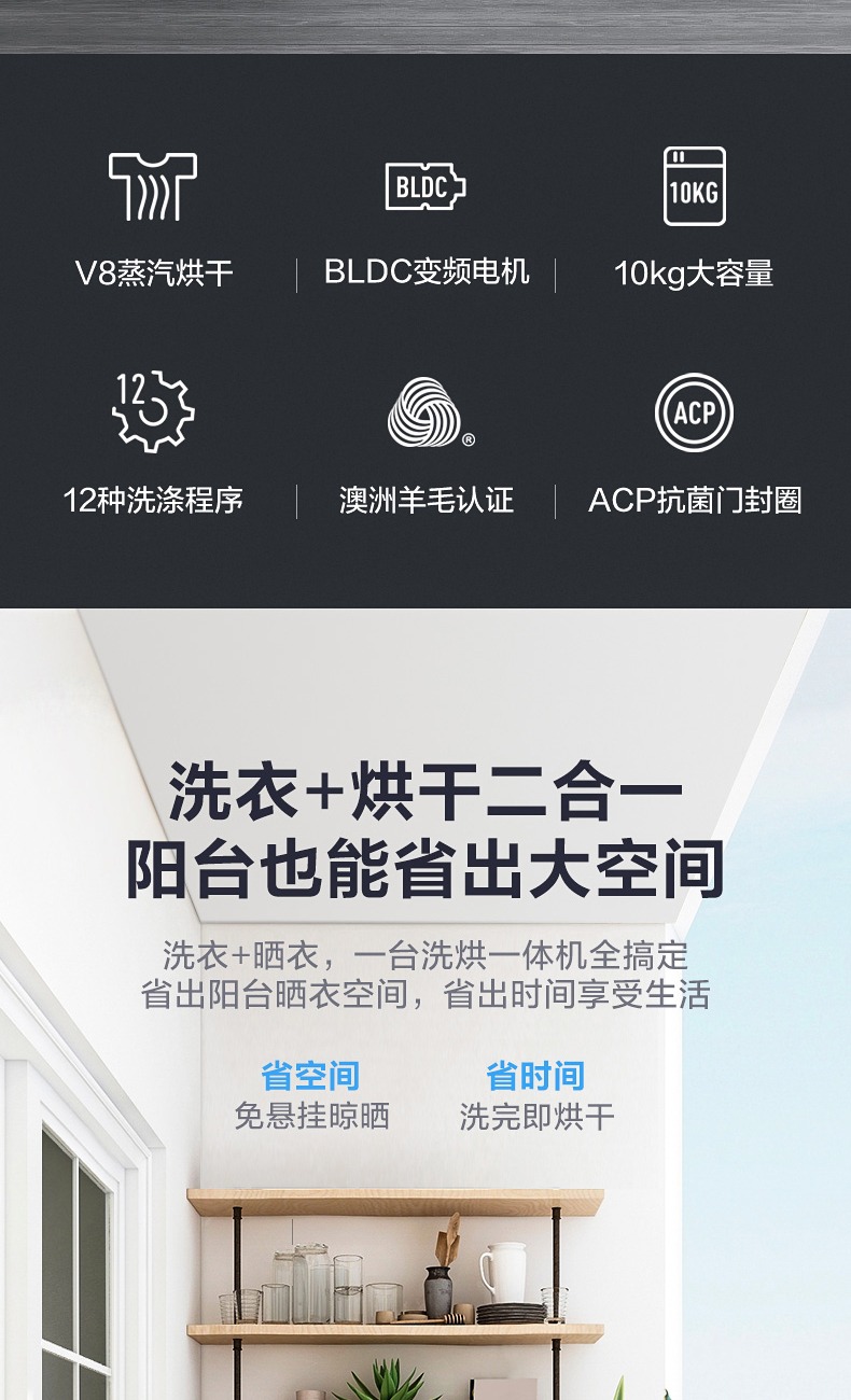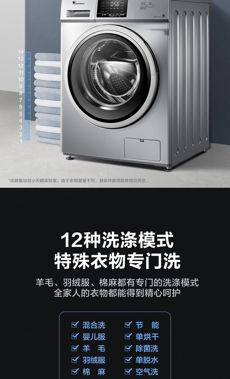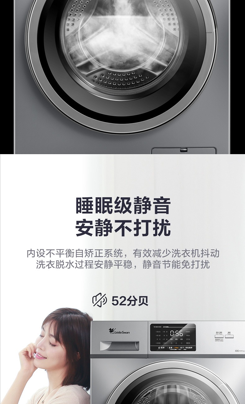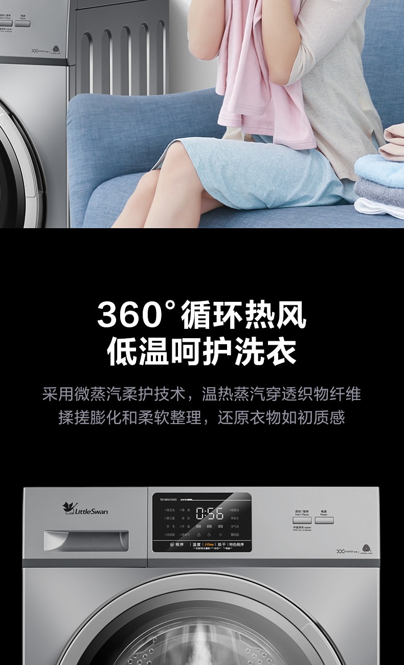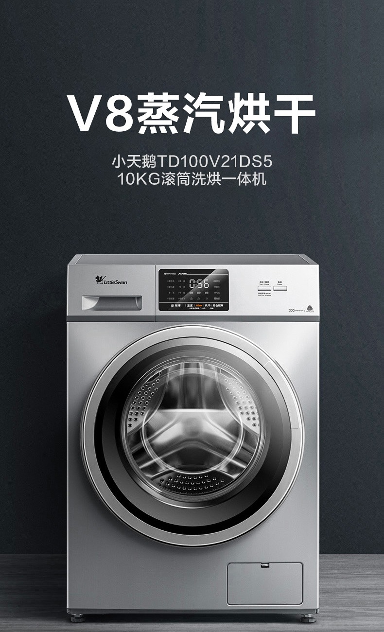 小天鹅滚筒洗衣机全自动家用杀菌洗烘干一体10kgTD100V21DS5