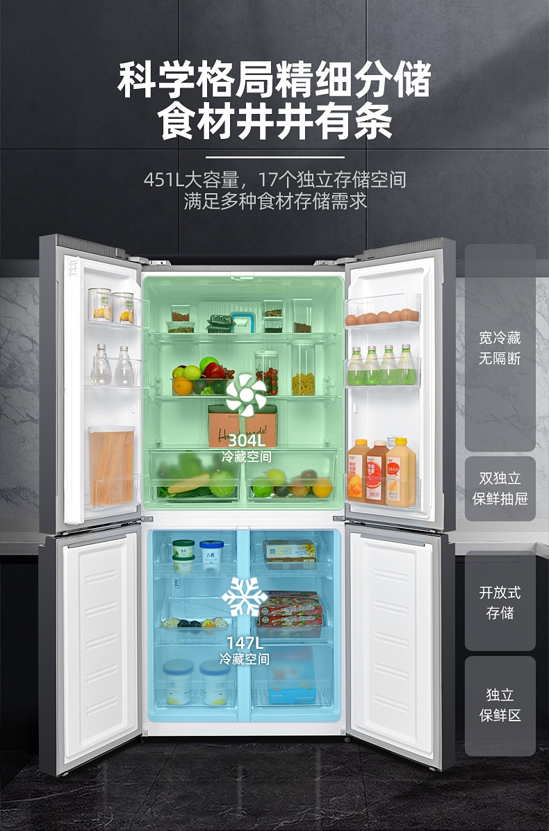 康佳451L一级双变频风冷无霜家用十字对开门双开门4四开门电冰箱
