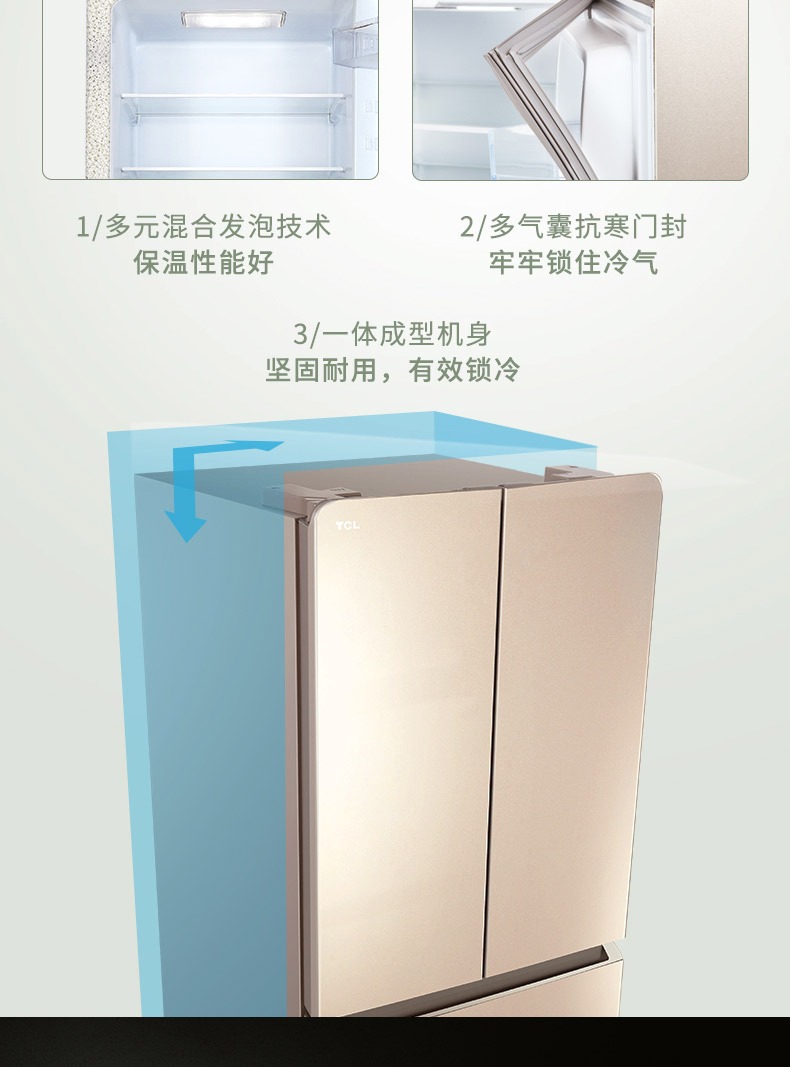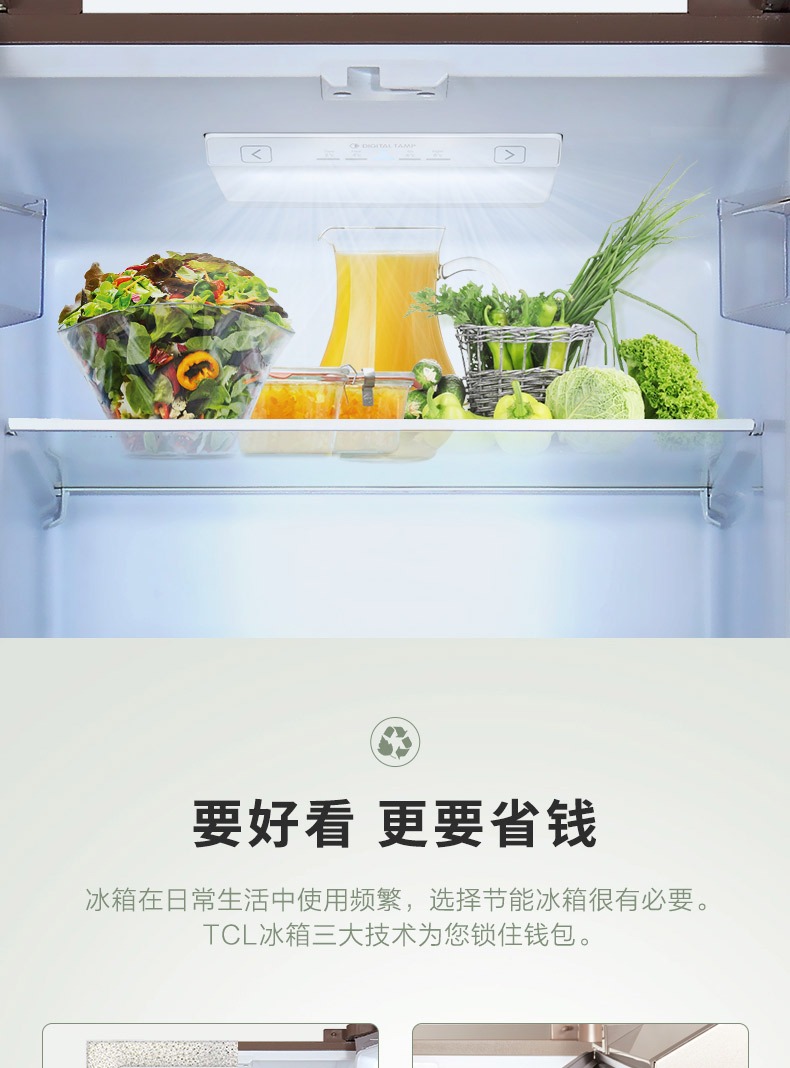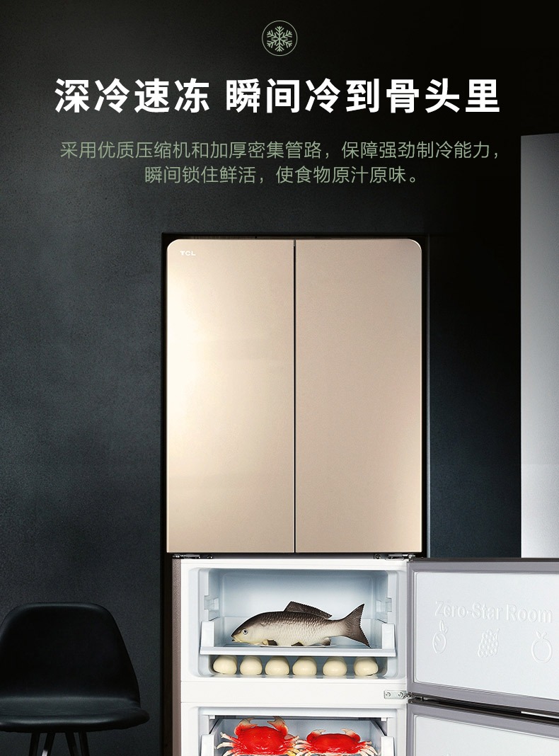 TCL BCD-282KR50 282升四开门法式多门电冰箱双门式对开家用节能