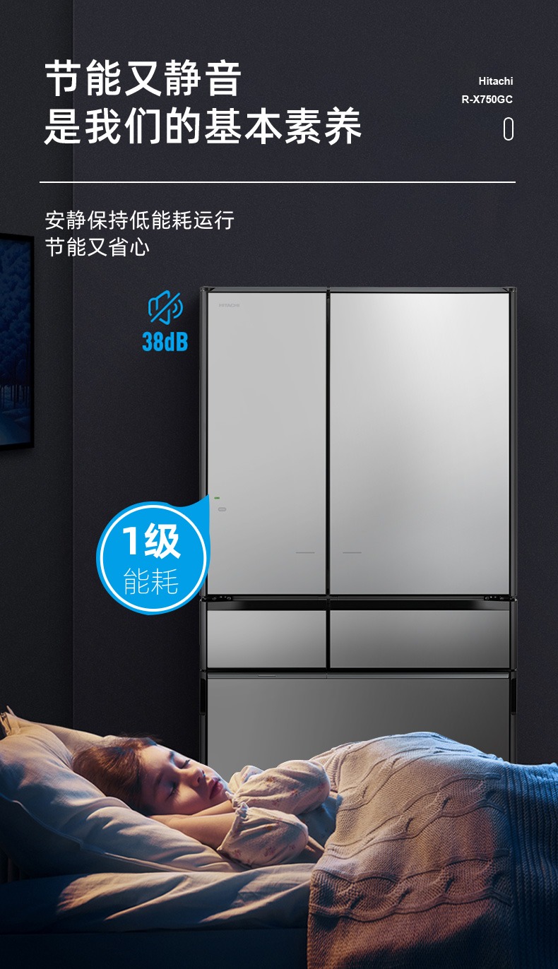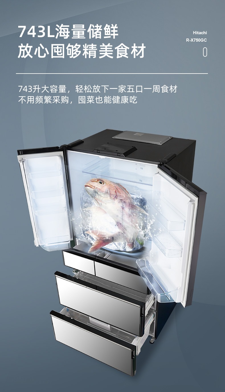 Hitachi/日立冰箱R-X750GC日本原装进口多门镜面真空保鲜变频旗舰