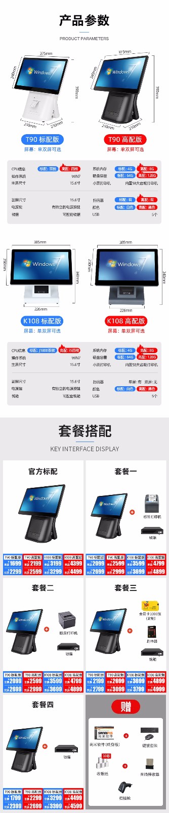 顶配128G触摸屏收银机一体机双屏机四核i5超市专用奶茶便利店药店商用小型收银台电脑烟草收银管理系统收款机