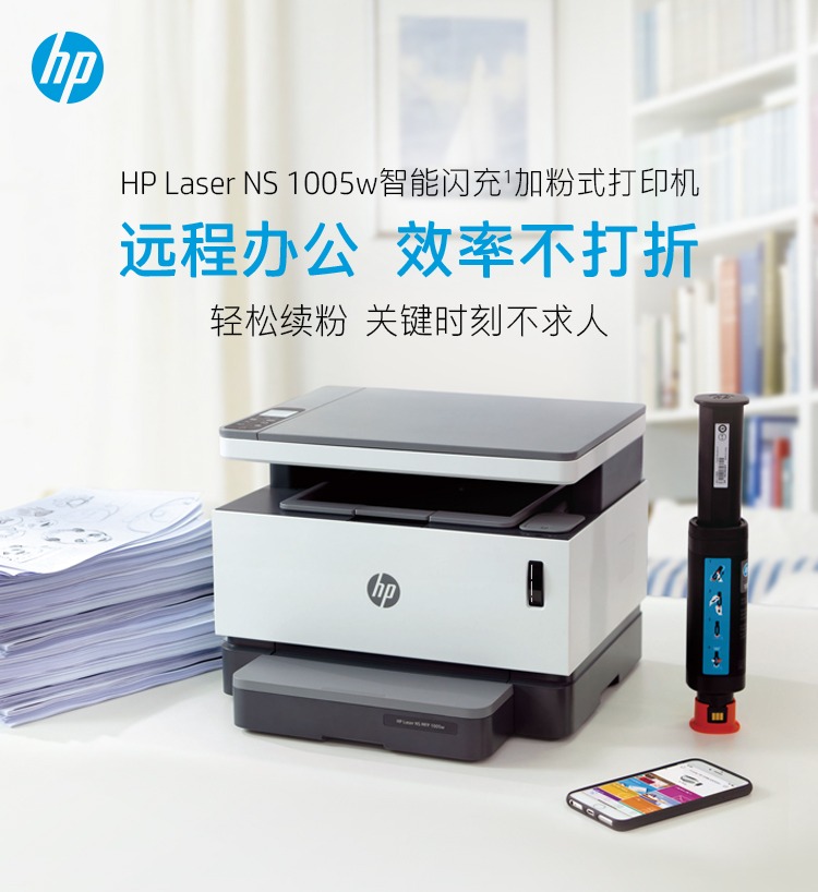 惠普HP Laser NS MFP 1005w原装加粉黑白激光多功能打印一体机无线wifi手机连接A4复印扫描家用办公商