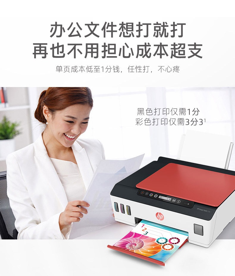 HP惠普tank519彩色墨仓式连供打印一体机复印扫描531家用学生迷小型家庭办公室可连接手机无线喷墨照片A4商务