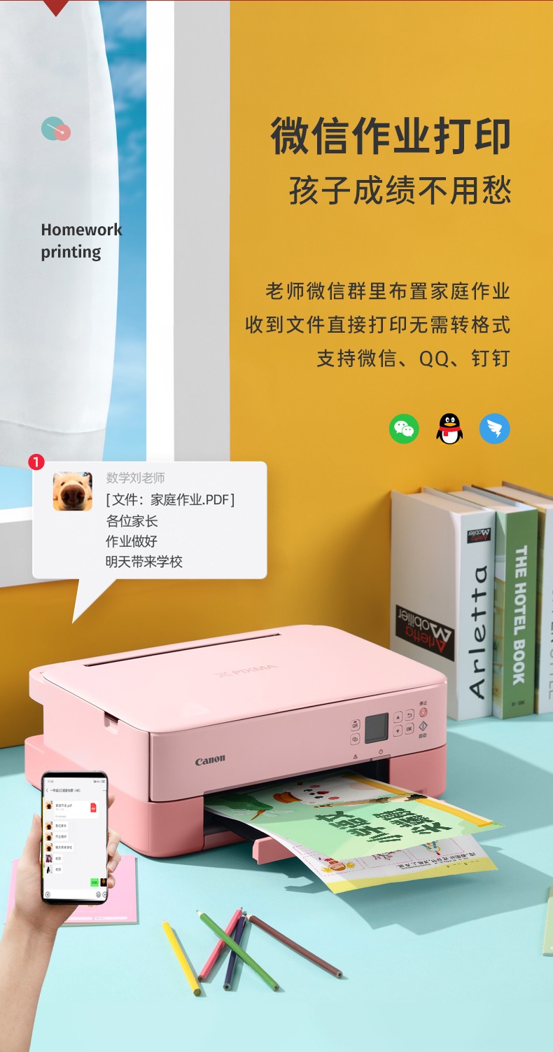 佳能TS5380无线打印机家用复印一体机小型a4彩色照片喷墨家庭学生手机连接蓝牙激光扫描件TS5080wifi相片迷你
