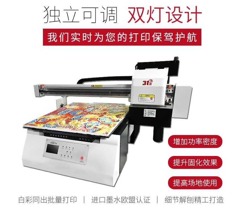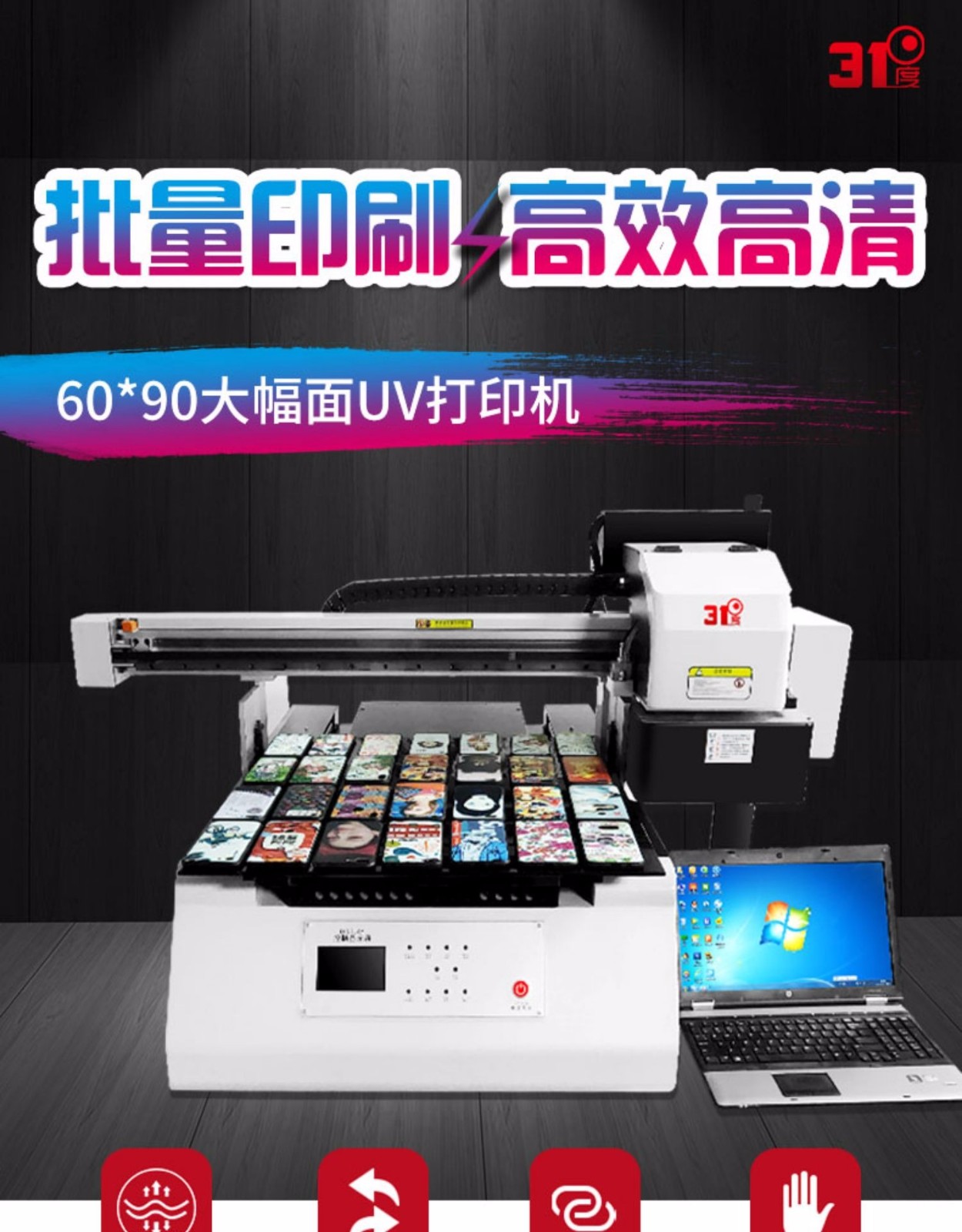 31度uv平板打印机大型批量亚克力玻璃金属曲面定制喷墨彩绘设备