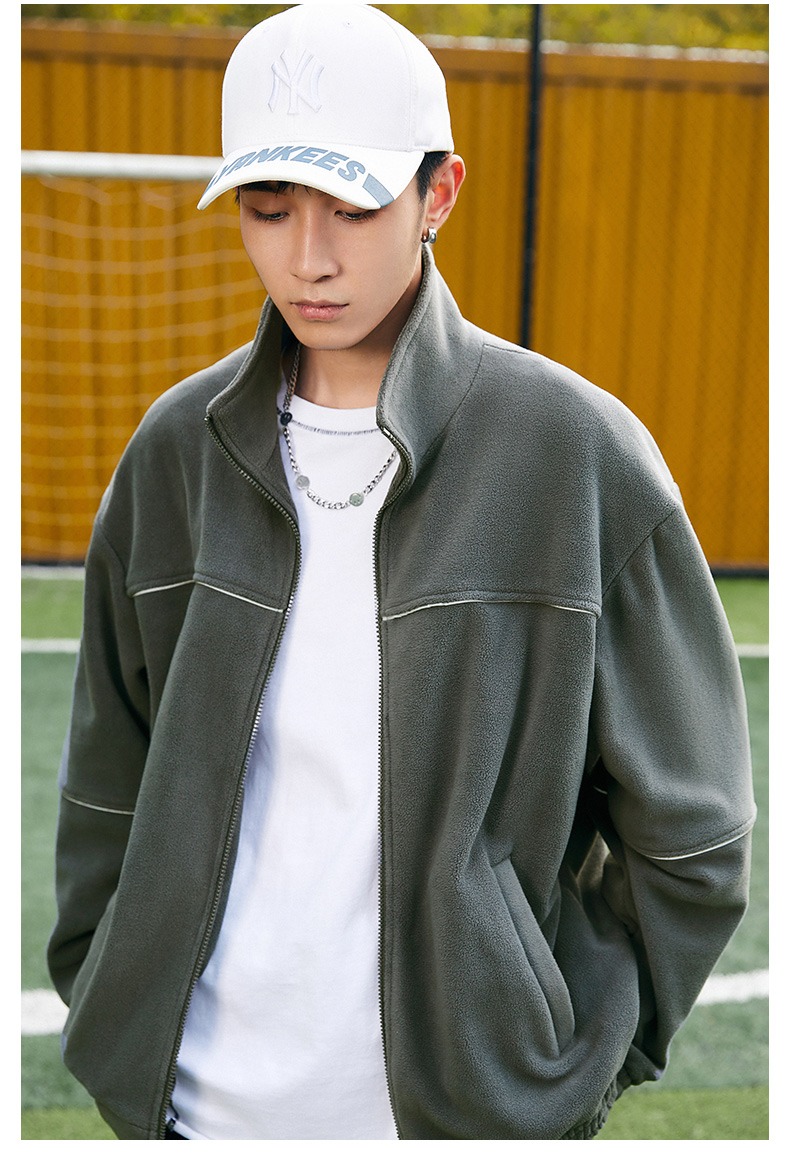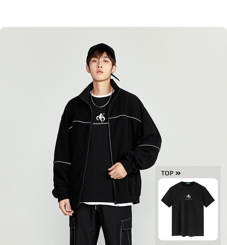 太平鸟男装 春季夹克衫男摇粒绒潮流体恤反光条外套韩版茄克薄款