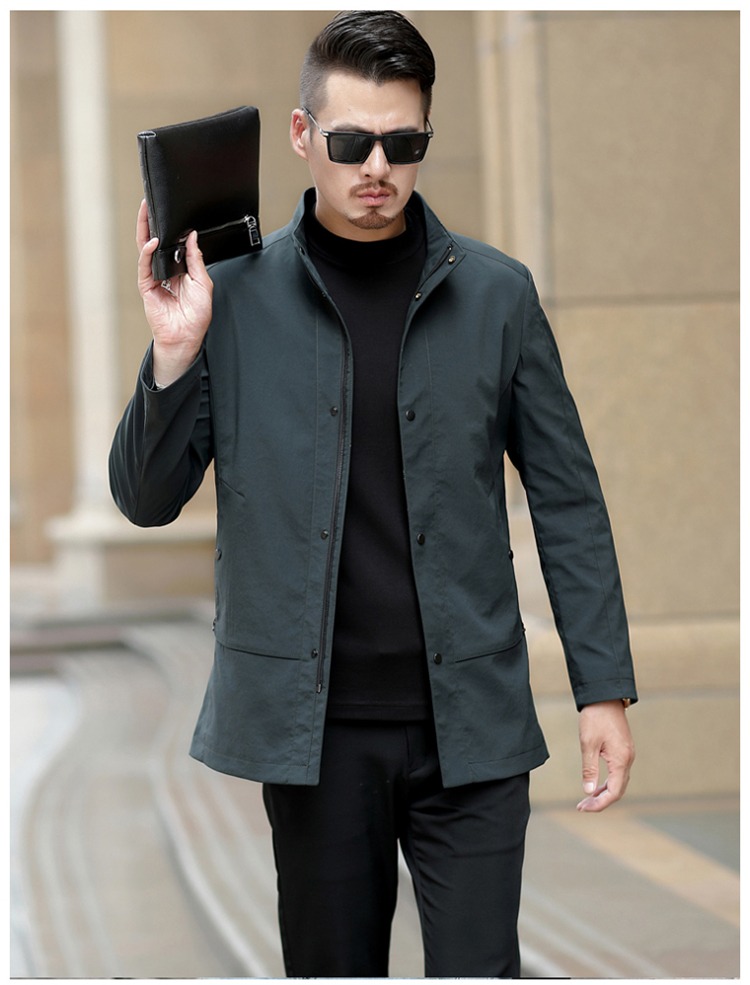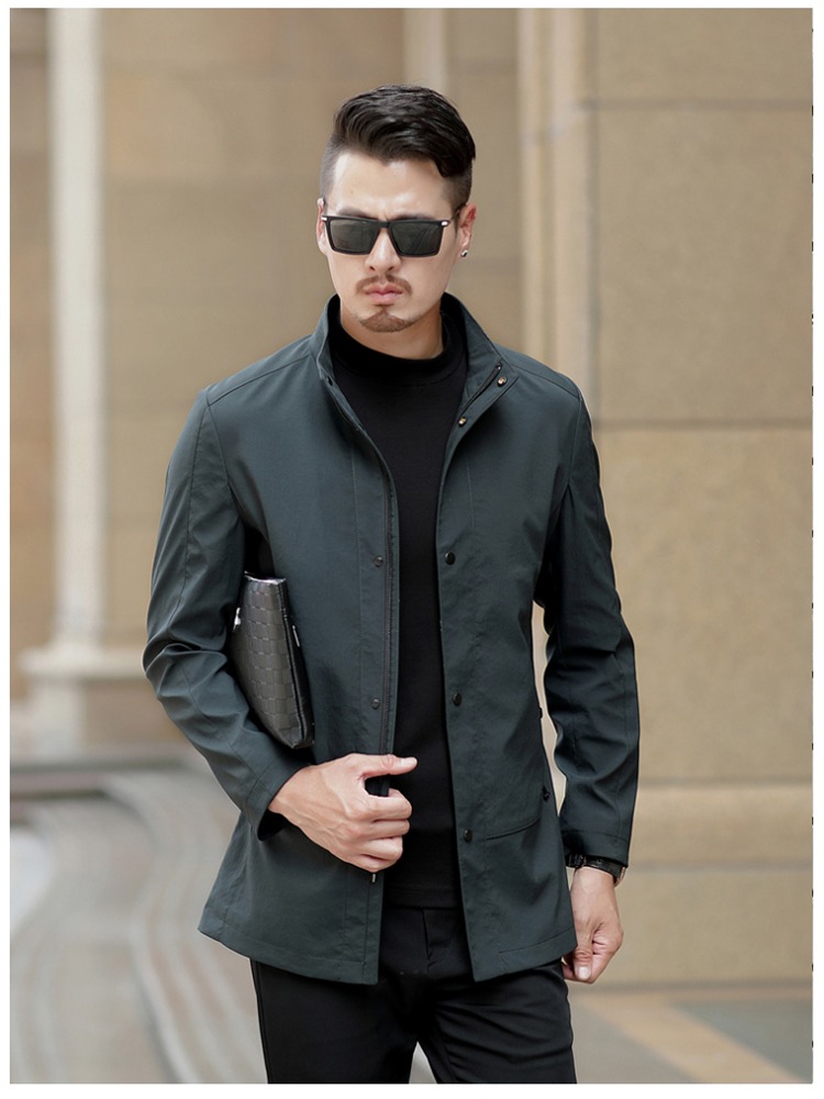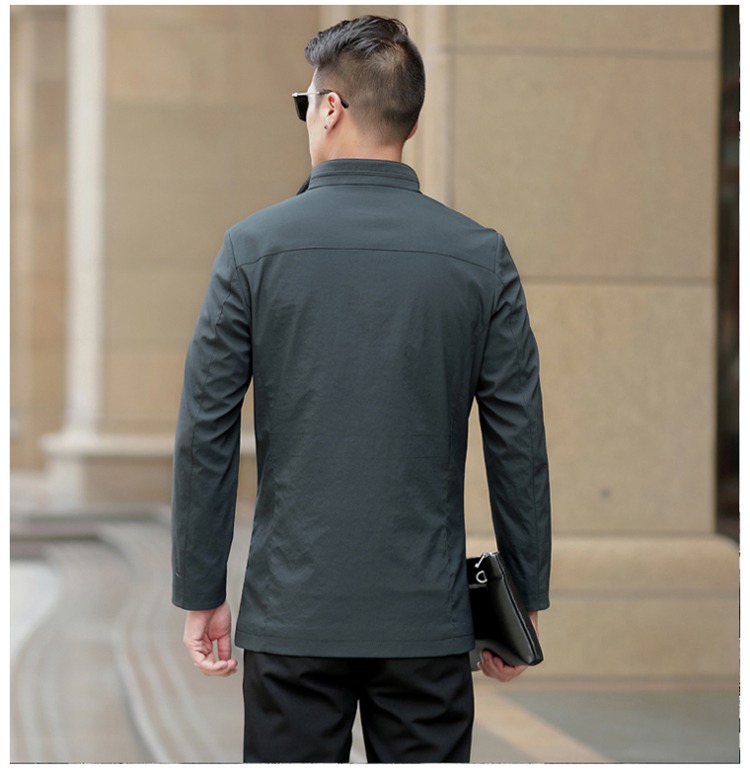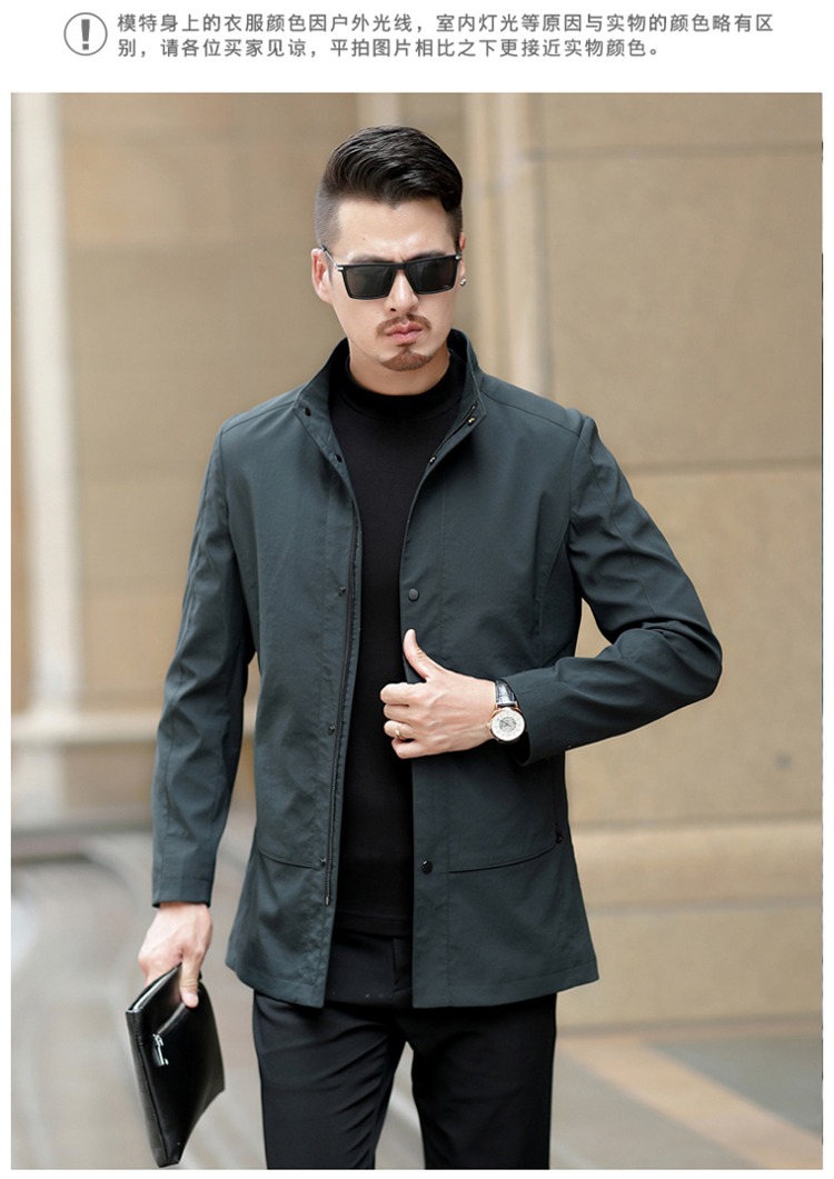 啄木鸟春季薄款夹克男中年休闲商务外套立领爸爸装春秋中长款上衣