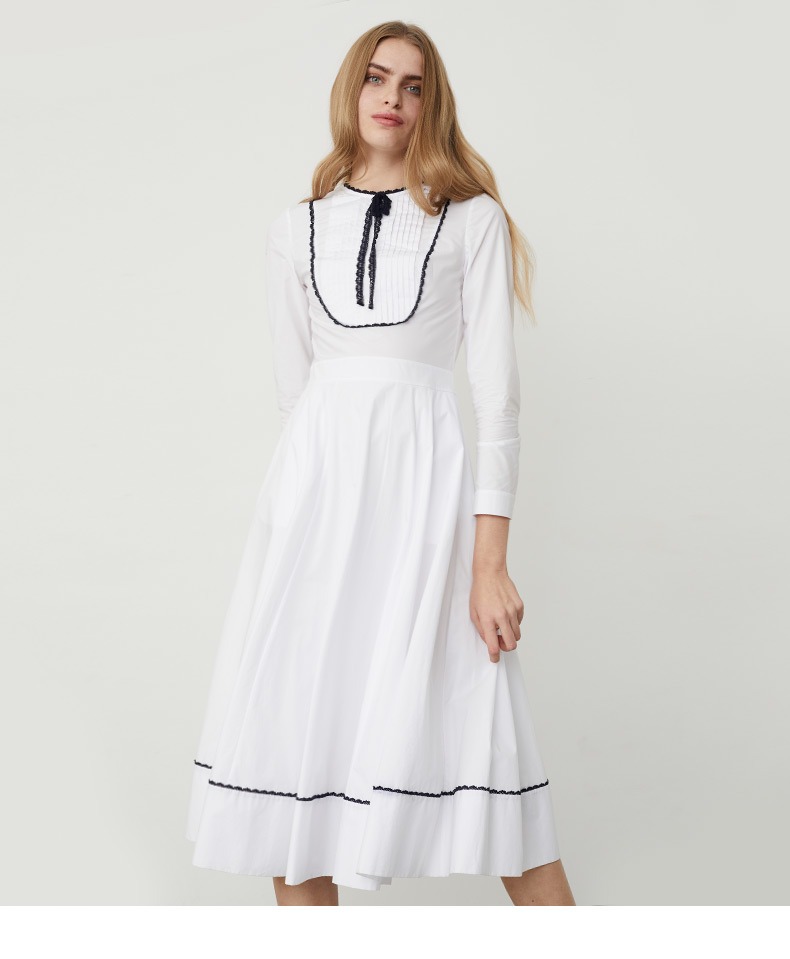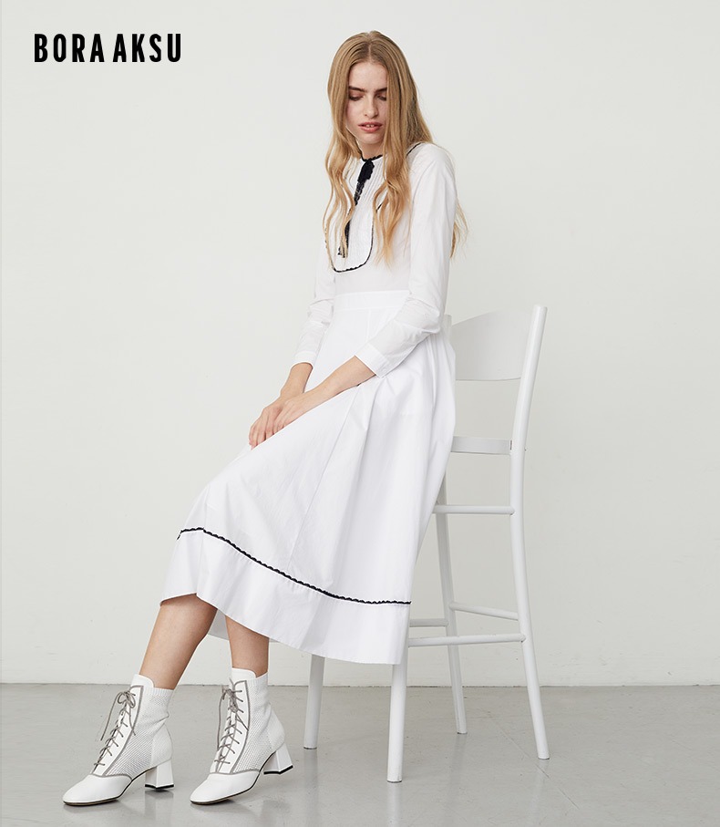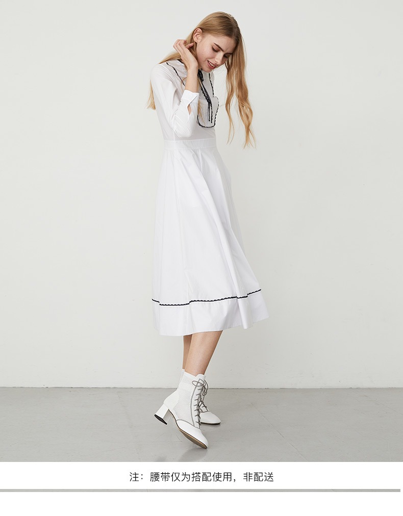 BORAAKSU2021春季新款拼色花边长袖连衣裙B1BB65250