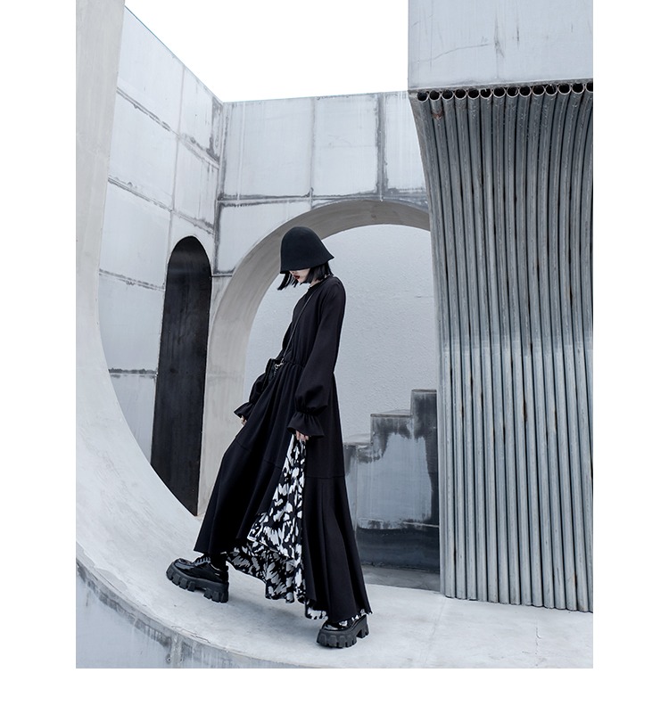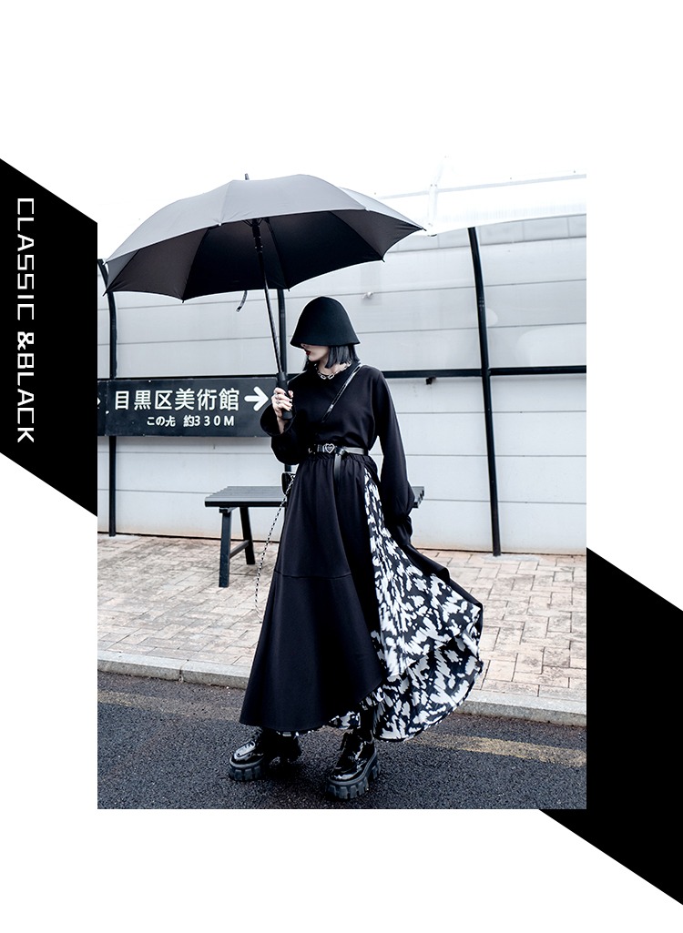 CHICSKY 设计感连衣裙女2021年新款春秋收腰打底裙子不规则长裙