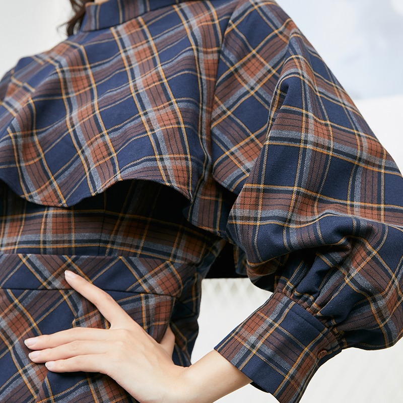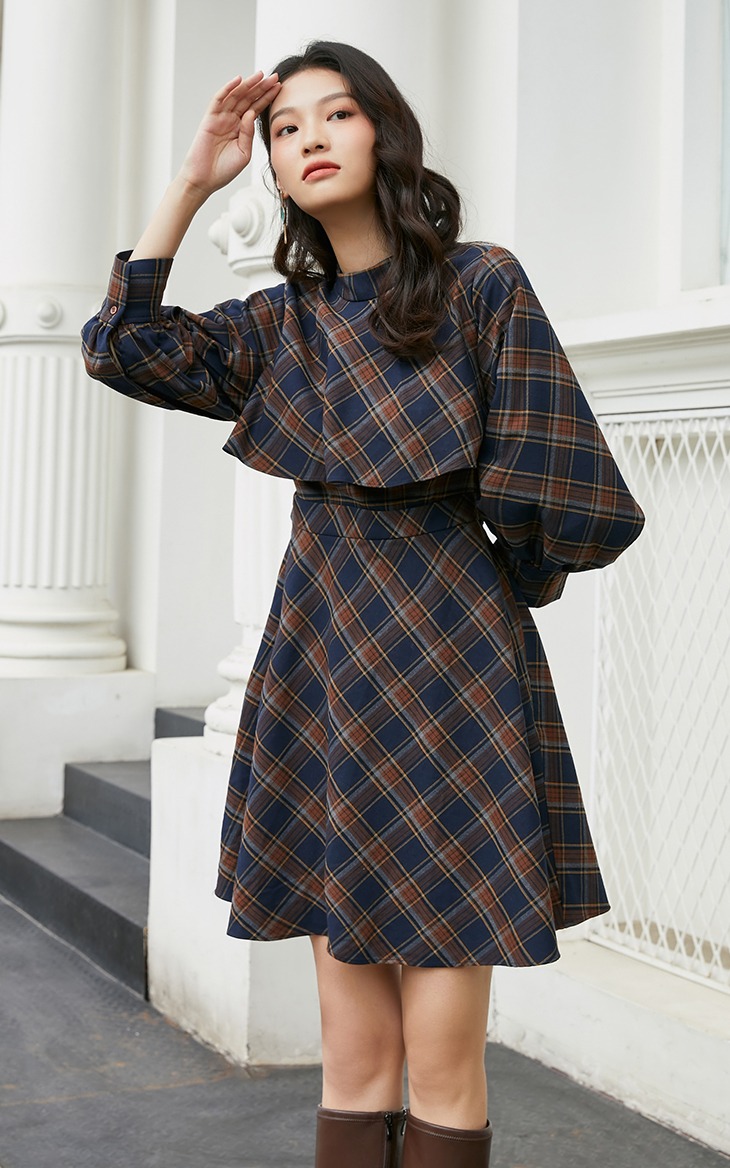 Vero Moda2020新款秋季复古格纹高领斗篷式连衣裙|32017C538