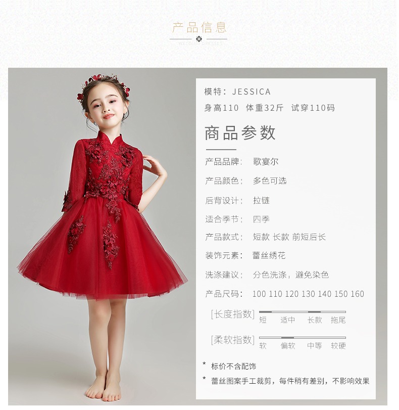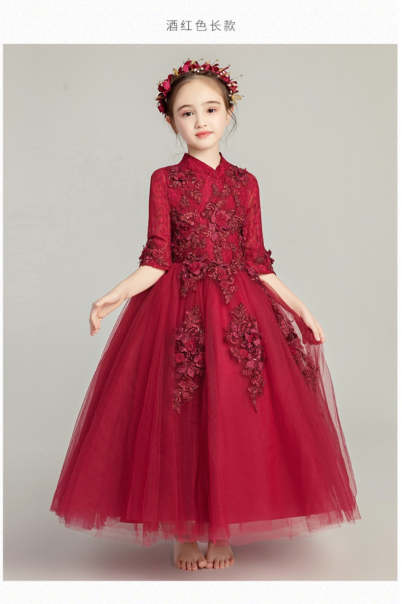 儿童公主裙女童小花童钢琴演出服女孩模特走秀表演服婚礼伴娘礼服