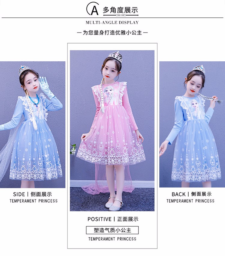 冰雪奇缘爱莎公主裙女童春秋冬装加绒艾沙儿童生日礼服正版连衣裙
