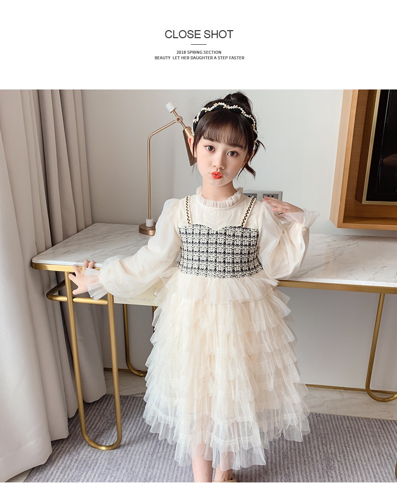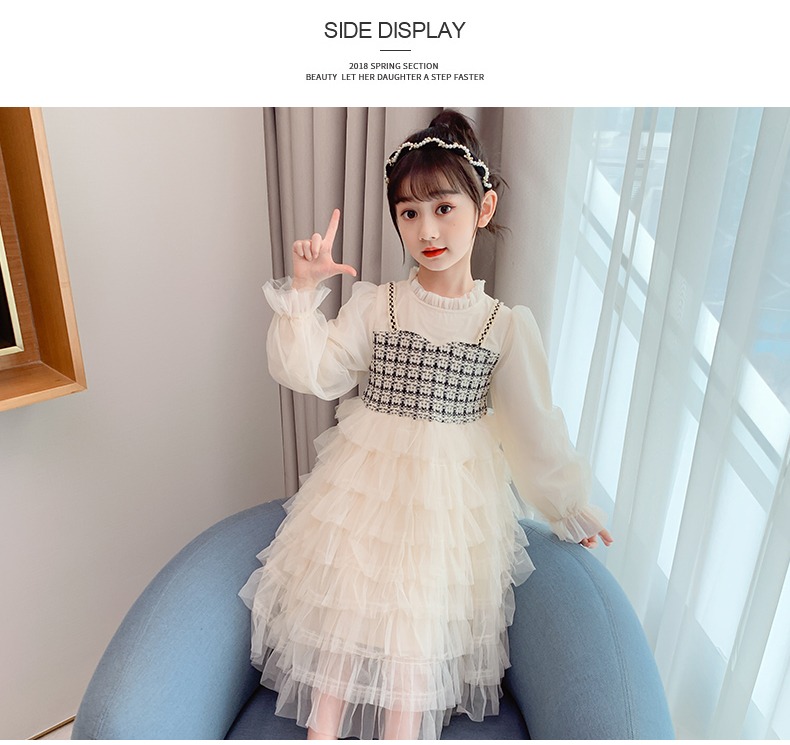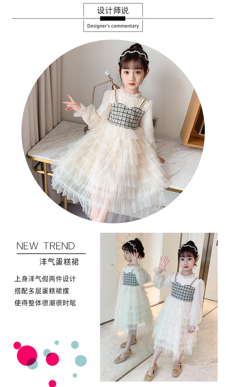 女童春装连衣裙2021新款洋气中大儿童装女孩春秋长袖蛋糕公主裙子