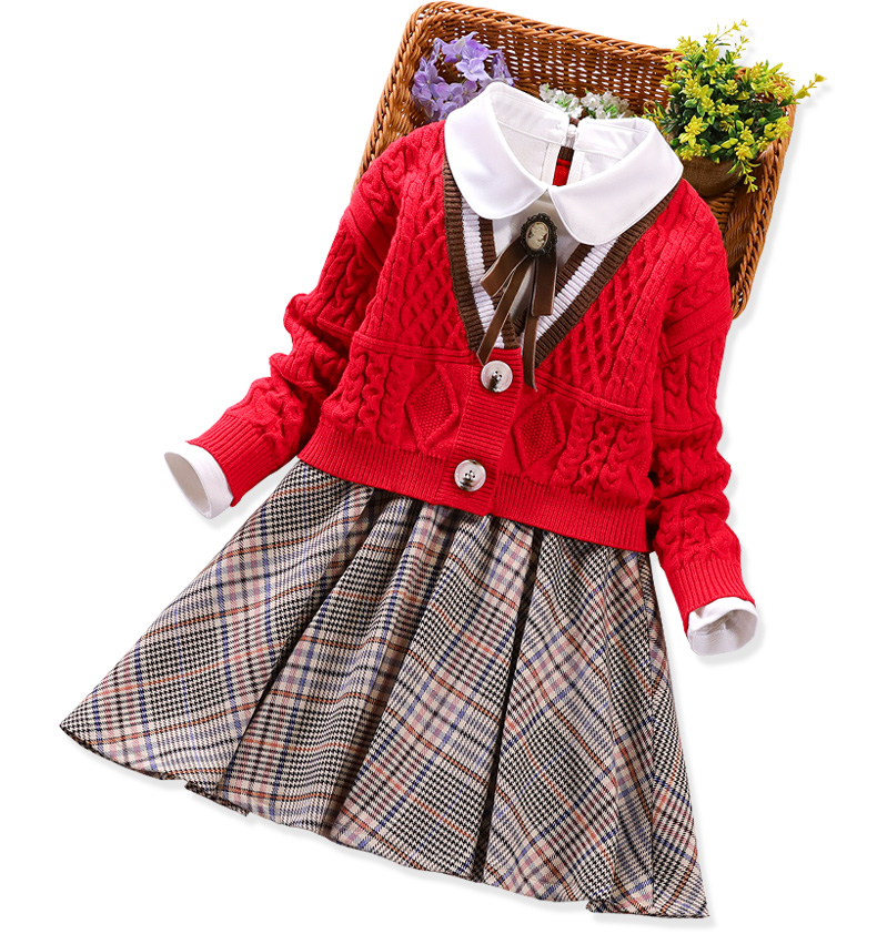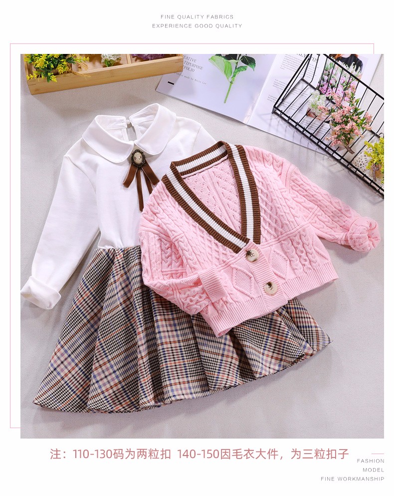 儿童装女童毛衣连衣裙2021春装开学两件套女孩学院风新年公主裙子