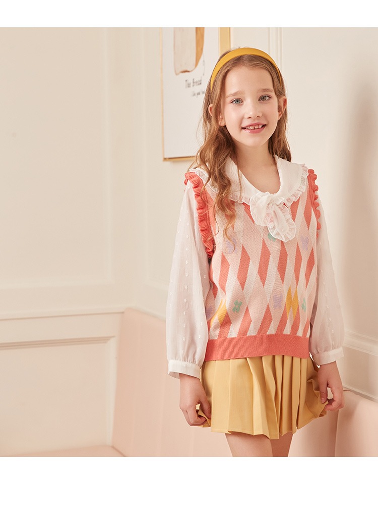 爱法贝童装2021春装新款女童线衫毛衣儿童马甲背心时尚