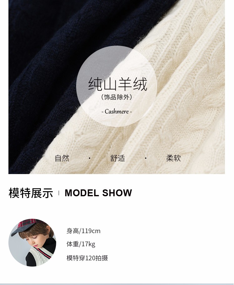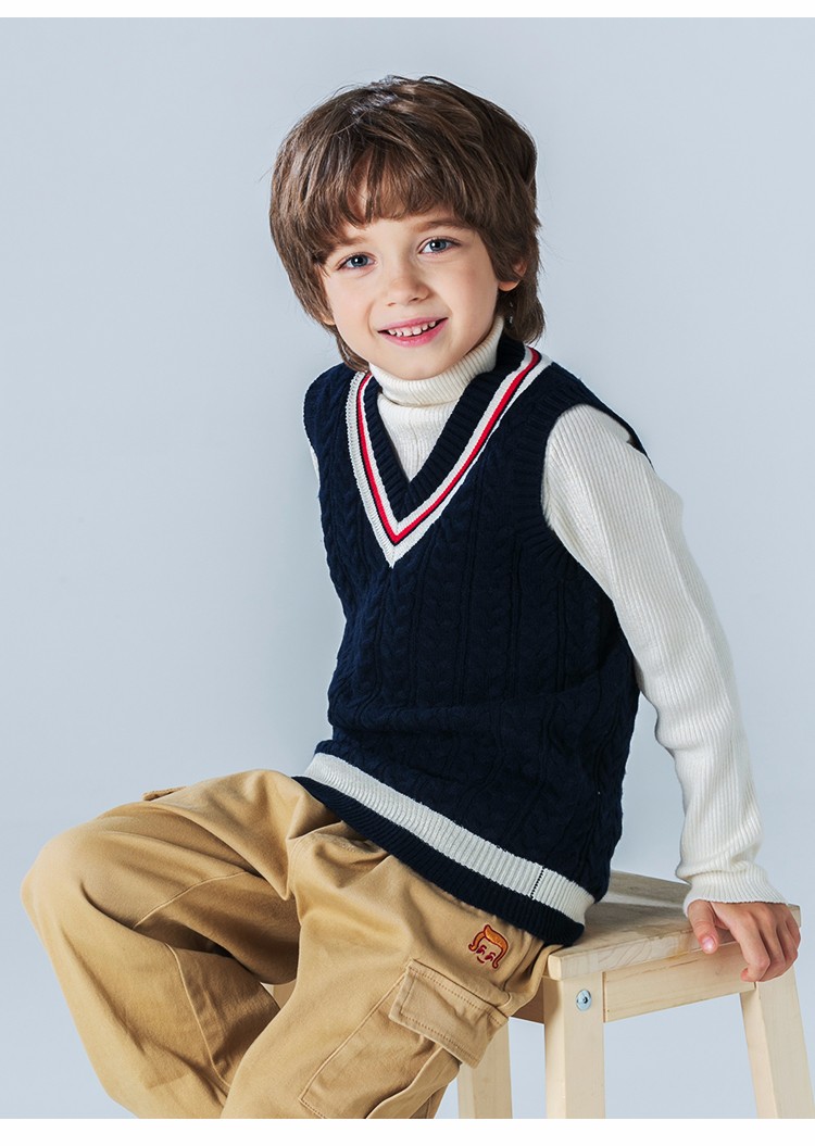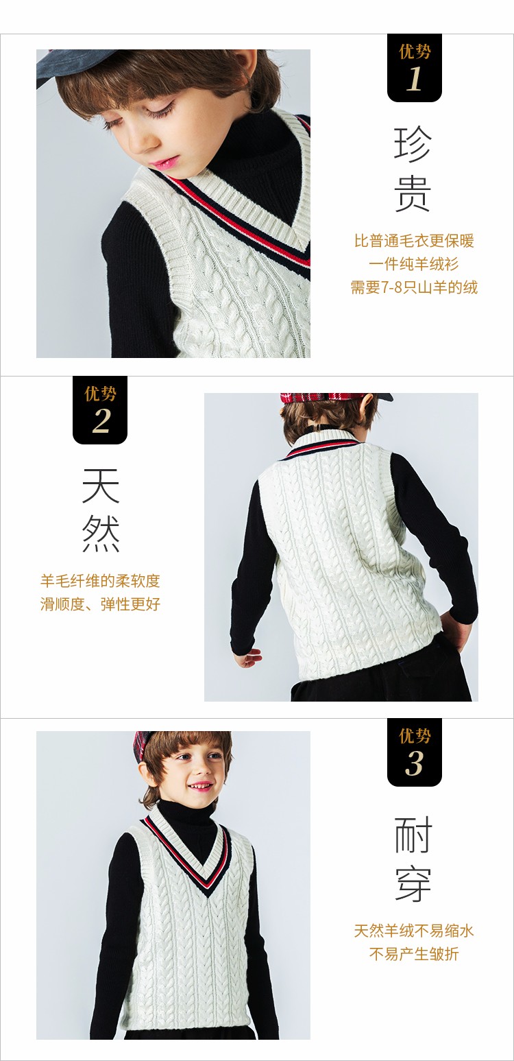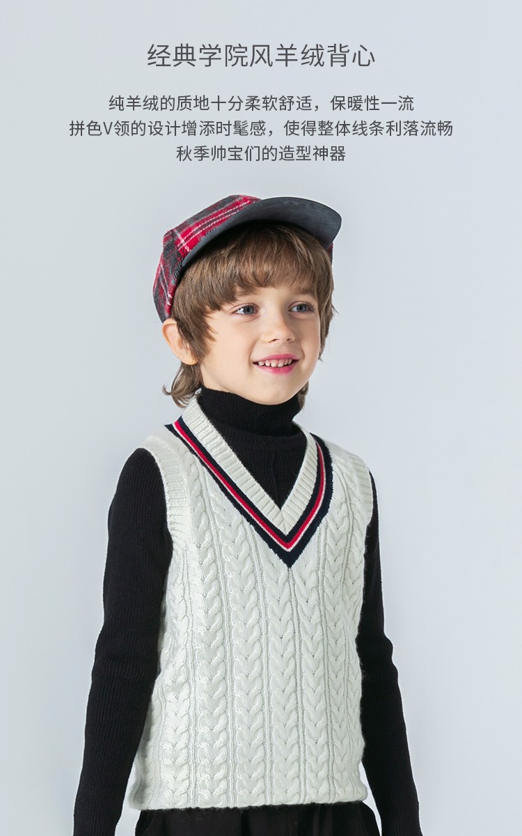 恒源祥童装男童羊绒衫纯羊绒背心2020秋装新款儿童毛衣学院风背心