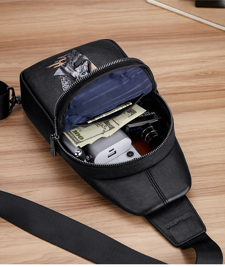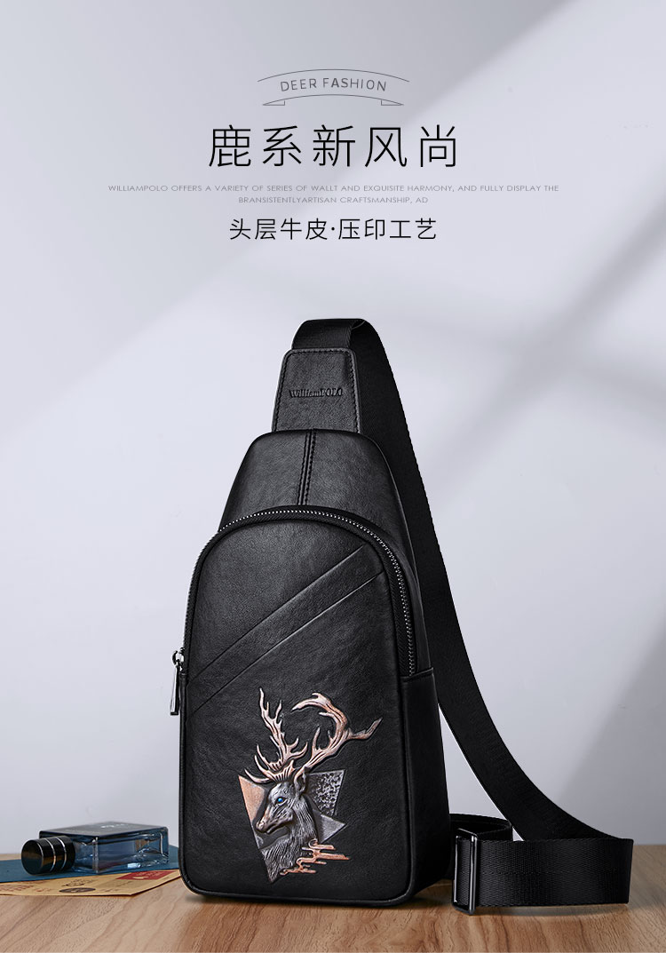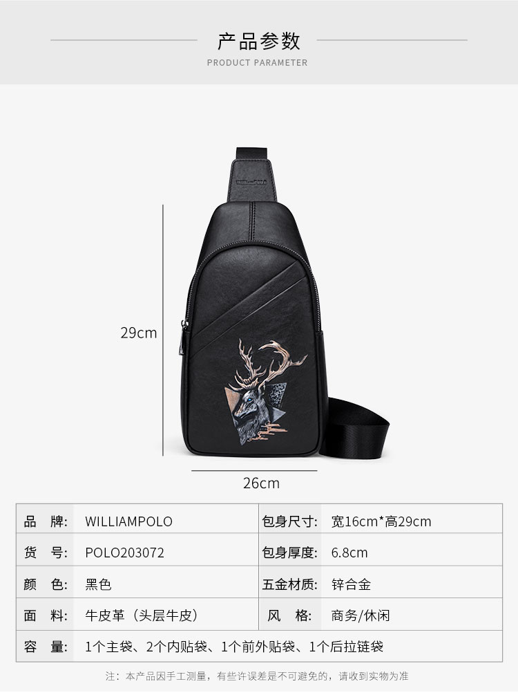 英皇保罗头层真牛皮单肩百搭斜挎胸包背包休闲男包韩版时尚潮牌包