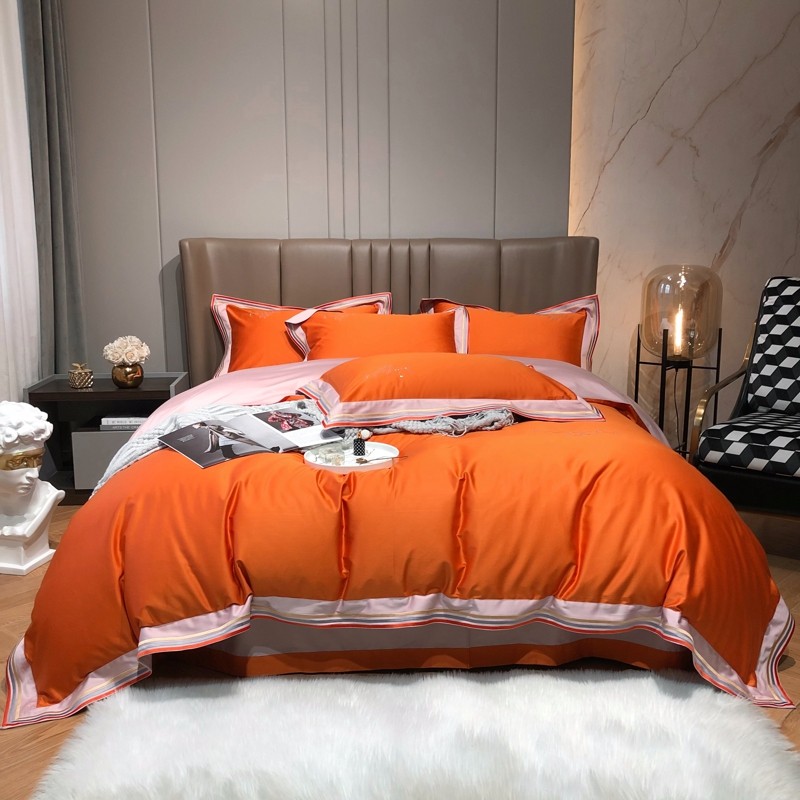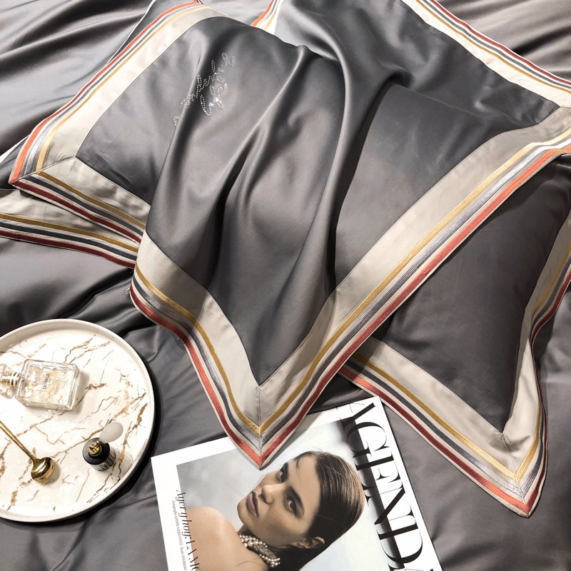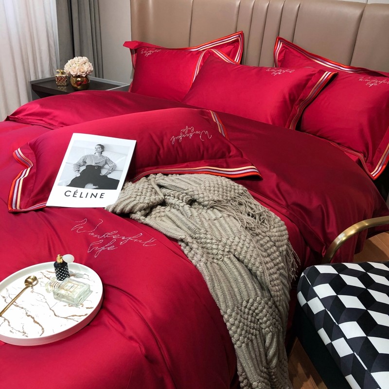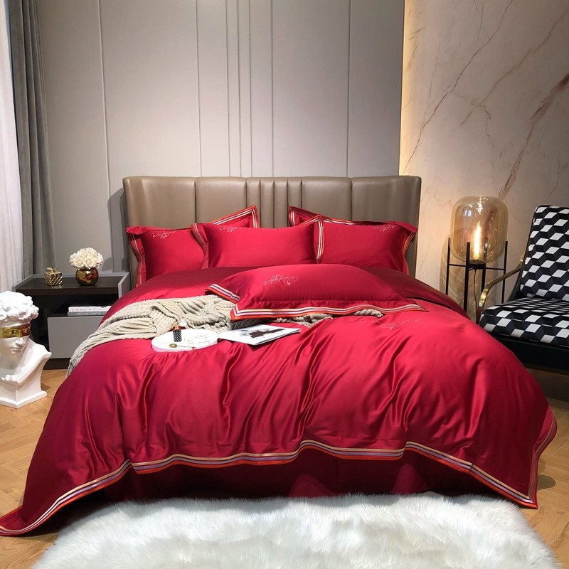 高端轻奢风100支长绒棉贡缎纯棉四件套简约全棉刺绣床单床上用品