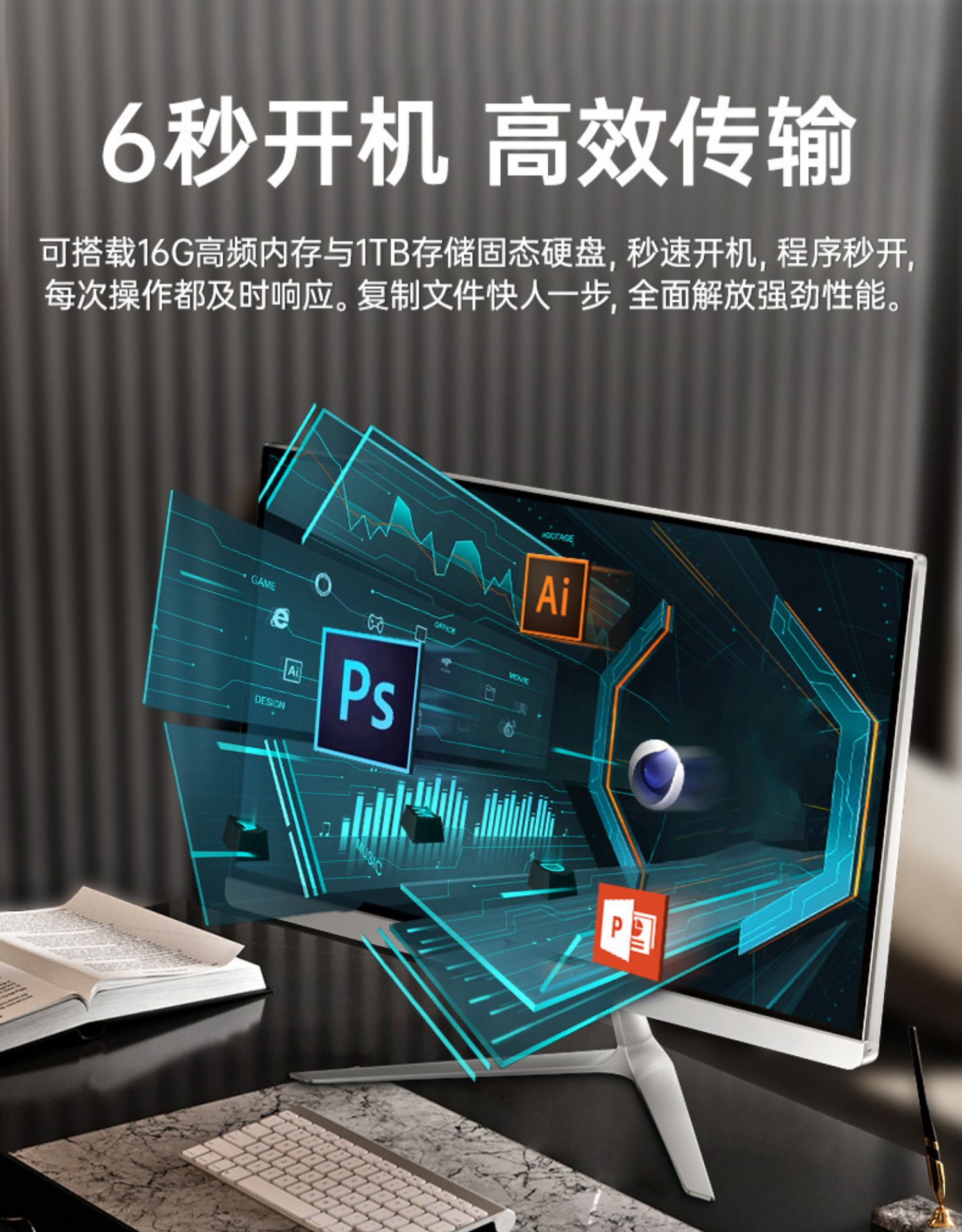 i7高配独显四核27英寸办公家用游戏型一体机电脑主机台式整机全套