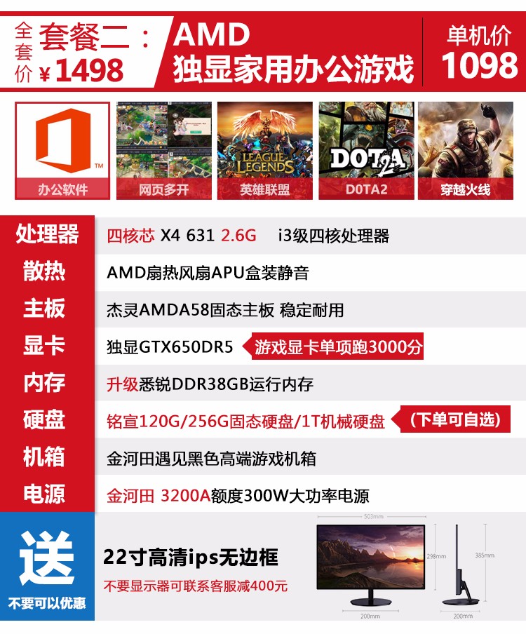 i5台式i7高配设计DIY组装机四核独显LOL游戏办公主机家用电脑全套