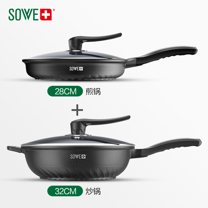 sowe麦饭石不粘锅家用锅具套装组合无油烟炒煎锅两件套