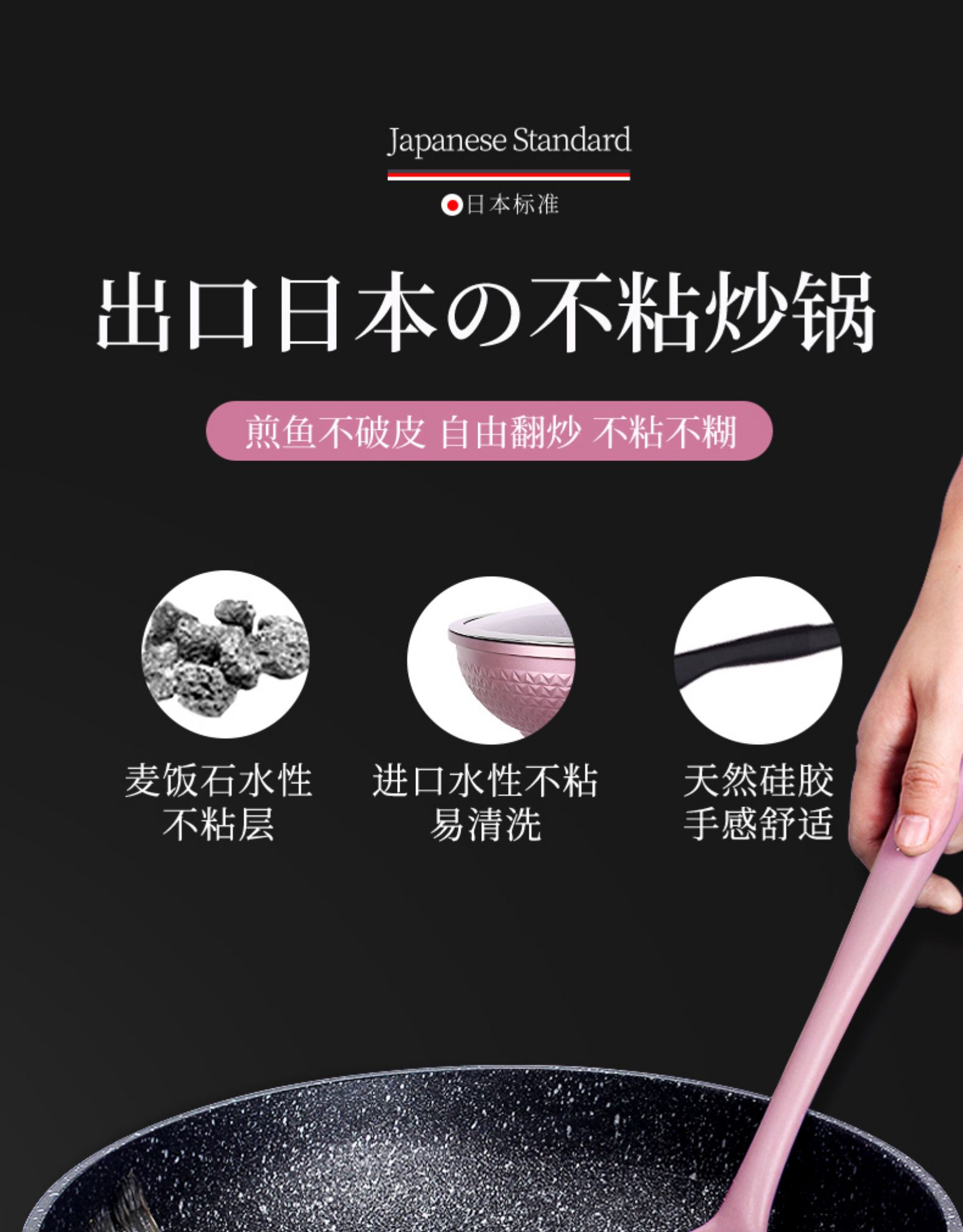 麦饭石不粘锅小炒锅无涂层大勺马勺平底电磁炉煤气灶专用炒菜家用