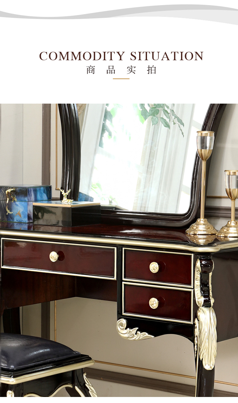 欧式梳妆台带抽屉卧室组装公主化妆台化妆桌卧室黑檀轻奢家具