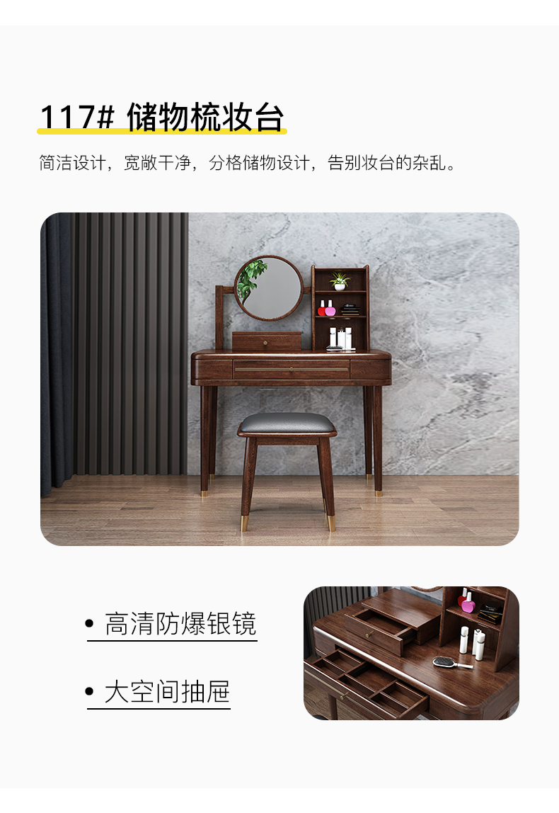 轻奢实木梳妆台新中式胡桃木收纳柜一体简约小户型现代北欧化妆台