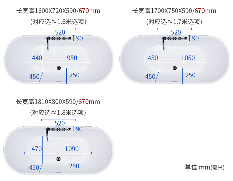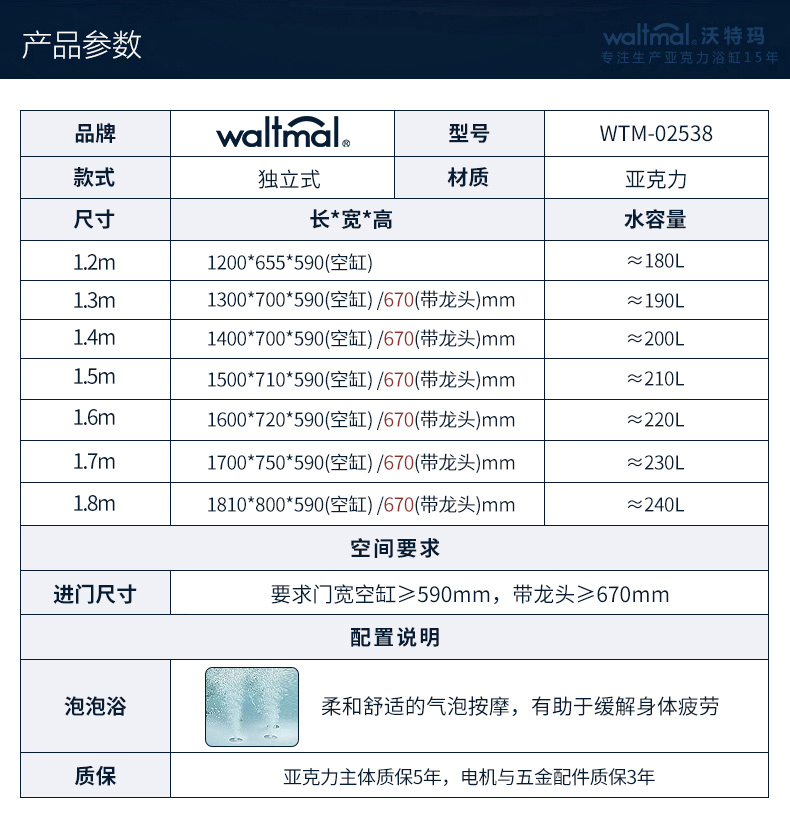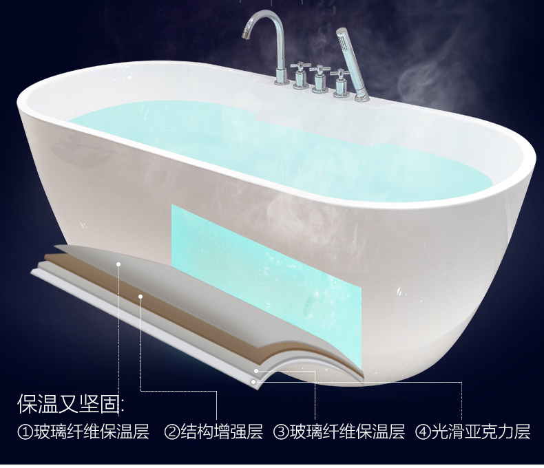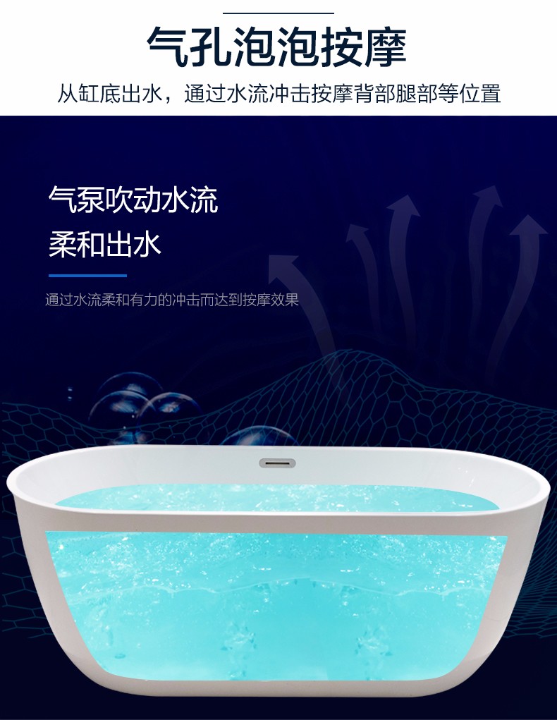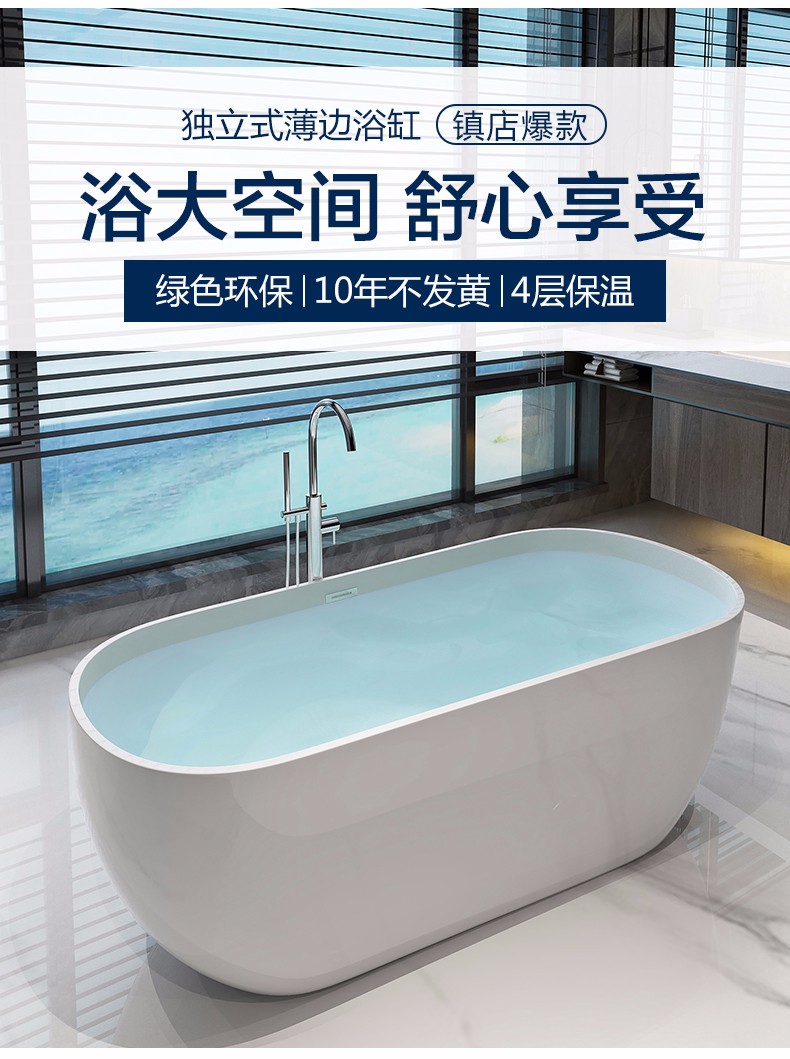 沃特玛独立式浴缸家用成人卫生间欧式亚克力浴盆小户型1.2-1.8米
